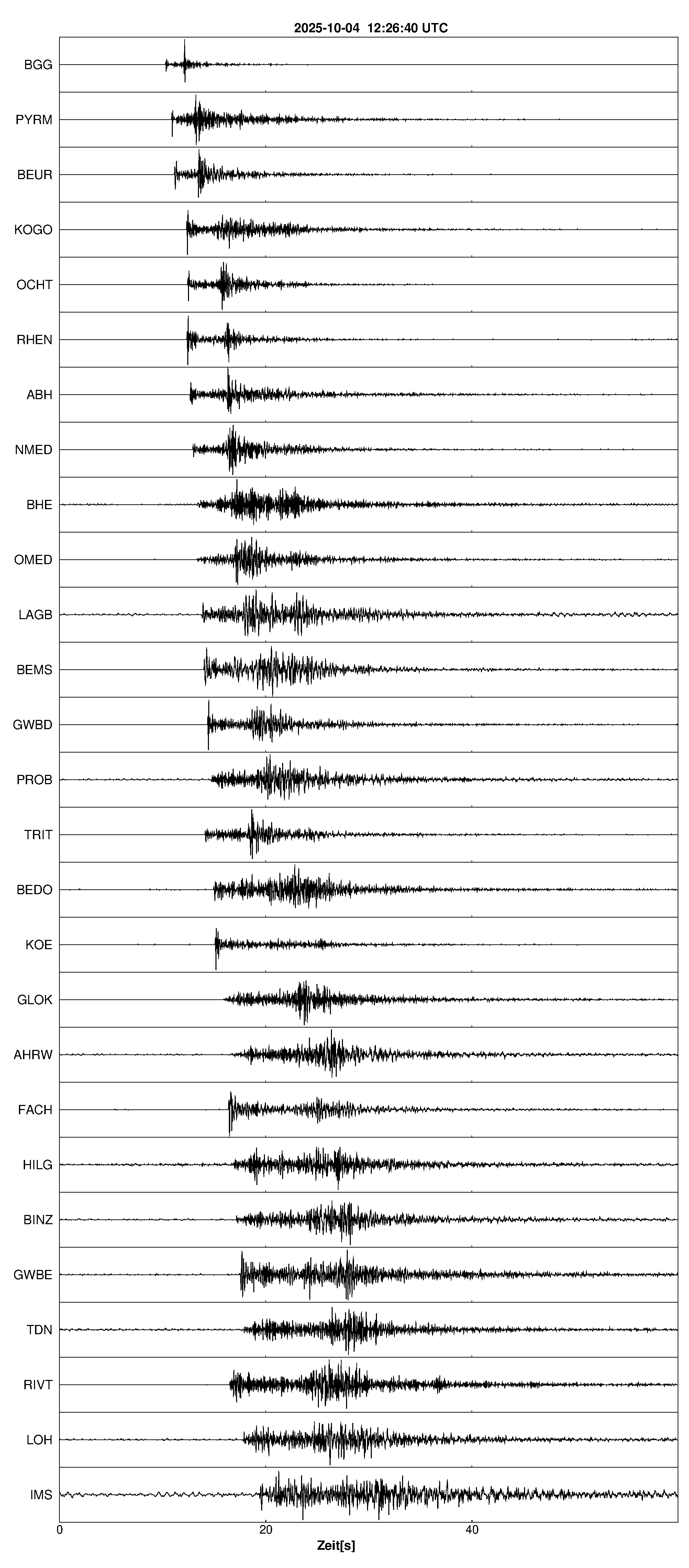Pfadnavigation Startseite Geologischer Dienst Erdbeben Aktuelle Erdbeben Erdbeben bei Mörsdorf, Rhein-Hunsrück-Kreis, RP Teilen Erdbeben bei Mörsdorf, Rhein-Hunsrück-Kreis, RP Erdbeben bei: Mörsdorf, Rhein-Hunsrück-Kreis, RP Datum/Uhrzeit: am 04.10.2025 um 14:26 Uhr Ortszeit (MESZ) Stärke: 2.1 (Magnitude auf der Richter-Skala) Epizentrum: 50.1° N ㅤ 7.36° E Herdtiefe: ca. 8 km unter der Erdoberfläche Bemerkung: schwaches Erdbeben Seismogramme ausgewählter Erdbebenmessstationen: Erläuterungen: Datum/Uhrzeit:Datum und Zeit des Erdbebens in Ortszeit, also MEZ oder MESZ; Epizentrum:Punkt an der Erdoberfläche über dem Hypozentrum (Lage des Erdbebenherdes in der Tiefe); Magnitude:Erdbebenstärke auf der Richterskala (Lokalmagnitude ML); Herdtiefe:Tiefe des Erdbebens (Hypozentrums) in Kilometern unter NN. Seismogramme:Details zu den Erdbebenmessstationen finden sich im Kartenviewer des LGRB (Baden-Württemberg) und im Kartenviewer des LGB (Rheinland-Pfalz).