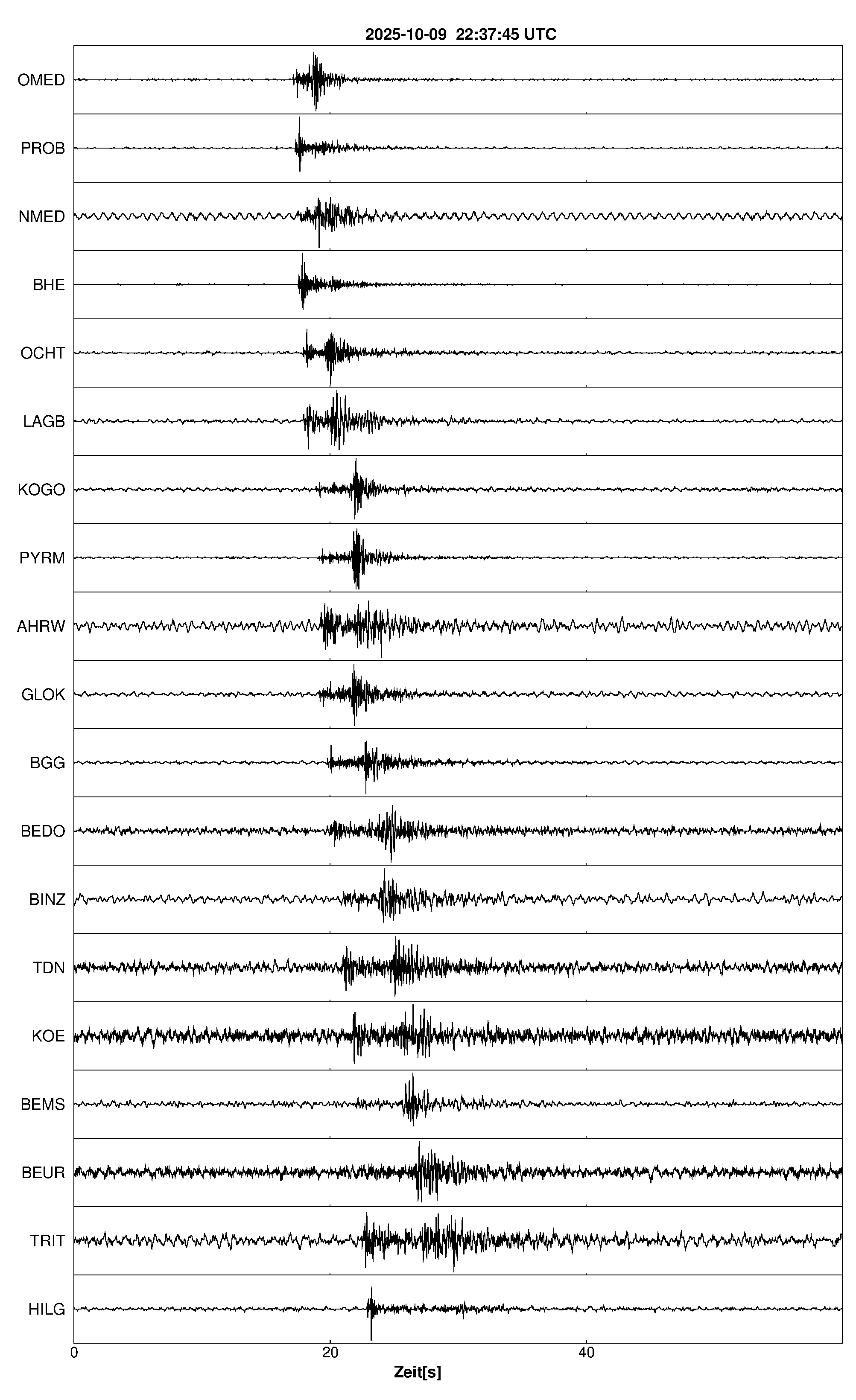 Pfadnavigation Startseite Geologischer Dienst Erdbeben Aktuelle Erdbeben Erdbeben bei Glees, Lkrs. Ahrweiler, RP Teilen Erdbeben bei Glees, Lkrs. Ahrweiler, RP Erdbeben bei: Glees, Lkrs. Ahrweiler, RP Datum/Uhrzeit: am 10.10.2025 um 00:38 Uhr Ortszeit (MESZ) Stärke: 0.8 (Magnitude auf der Richter-Skala) Epizentrum: 50.4° N ㅤ 7.25° E Herdtiefe: ca. 7 km unter der Erdoberfläche Bemerkung: sehr schwaches Erdbeben Seismogramme ausgewählter Erdbebenmessstationen: Erläuterungen: Datum/Uhrzeit:Datum und Zeit des Erdbebens in Ortszeit, also MEZ oder MESZ; Epizentrum:Punkt an der Erdoberfläche über dem Hypozentrum (Lage des Erdbebenherdes in der Tiefe); Magnitude:Erdbebenstärke auf der Richterskala (Lokalmagnitude ML); Herdtiefe:Tiefe des Erdbebens (Hypozentrums) in Kilometern unter NN. Seismogramme:Details zu den Erdbebenmessstationen finden sich im Kartenviewer des LGRB (Baden-Württemberg) und im Kartenviewer des LGB (Rheinland-Pfalz).