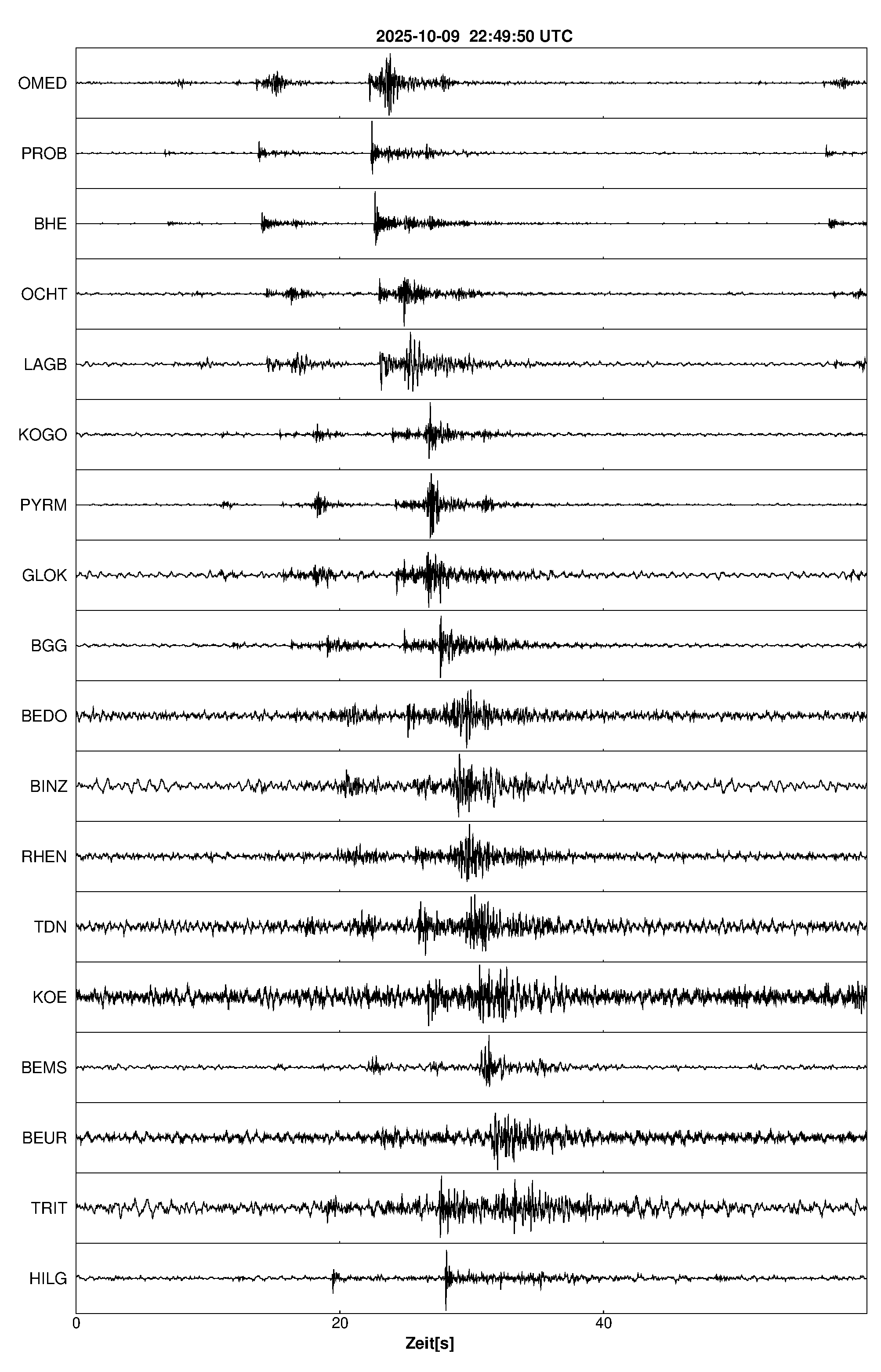 Pfadnavigation Startseite Geologischer Dienst Erdbeben Aktuelle Erdbeben Erdbeben bei Glees, Lkrs. Ahrweiler, RP Teilen Erdbeben bei Glees, Lkrs. Ahrweiler, RP Erdbeben bei: Glees, Lkrs. Ahrweiler, RP Datum/Uhrzeit: am 10.10.2025 um 00:50 Uhr Ortszeit (MESZ) Stärke: 0.8 (Magnitude auf der Richter-Skala) Epizentrum: 50.41° N ㅤ 7.25° E Herdtiefe: ca. 7 km unter der Erdoberfläche Bemerkung: sehr schwaches Erdbeben Seismogramme ausgewählter Erdbebenmessstationen: Erläuterungen: Datum/Uhrzeit:Datum und Zeit des Erdbebens in Ortszeit, also MEZ oder MESZ; Epizentrum:Punkt an der Erdoberfläche über dem Hypozentrum (Lage des Erdbebenherdes in der Tiefe); Magnitude:Erdbebenstärke auf der Richterskala (Lokalmagnitude ML); Herdtiefe:Tiefe des Erdbebens (Hypozentrums) in Kilometern unter NN. Seismogramme:Details zu den Erdbebenmessstationen finden sich im Kartenviewer des LGRB (Baden-Württemberg) und im Kartenviewer des LGB (Rheinland-Pfalz).