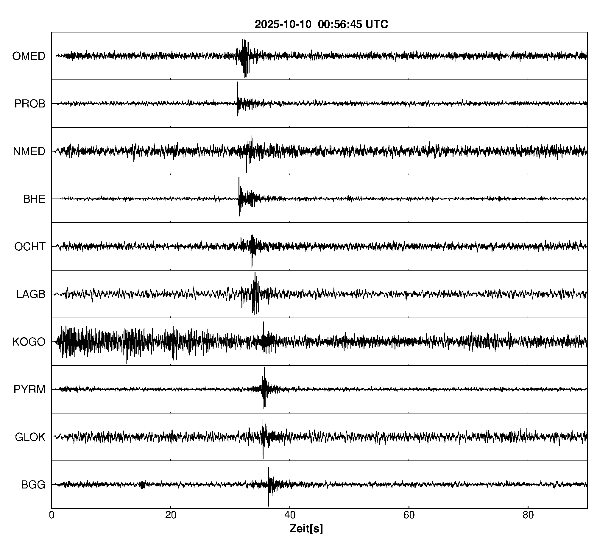 Pfadnavigation Startseite Geologischer Dienst Erdbeben Aktuelle Erdbeben Erdbeben bei Glees, Lkrs. Ahrweiler, RP Teilen Erdbeben bei Glees, Lkrs. Ahrweiler, RP Erdbeben bei: Glees, Lkrs. Ahrweiler, RP Datum/Uhrzeit: am 10.10.2025 um 02:57 Uhr Ortszeit (MESZ) Stärke: 0.3 (Magnitude auf der Richter-Skala) Epizentrum: 50.41° N ㅤ 7.25° E Herdtiefe: ca. 8 km unter der Erdoberfläche Bemerkung: sehr schwaches Erdbeben Seismogramme ausgewählter Erdbebenmessstationen: Erläuterungen: Datum/Uhrzeit:Datum und Zeit des Erdbebens in Ortszeit, also MEZ oder MESZ; Epizentrum:Punkt an der Erdoberfläche über dem Hypozentrum (Lage des Erdbebenherdes in der Tiefe); Magnitude:Erdbebenstärke auf der Richterskala (Lokalmagnitude ML); Herdtiefe:Tiefe des Erdbebens (Hypozentrums) in Kilometern unter NN. Seismogramme:Details zu den Erdbebenmessstationen finden sich im Kartenviewer des LGRB (Baden-Württemberg) und im Kartenviewer des LGB (Rheinland-Pfalz).