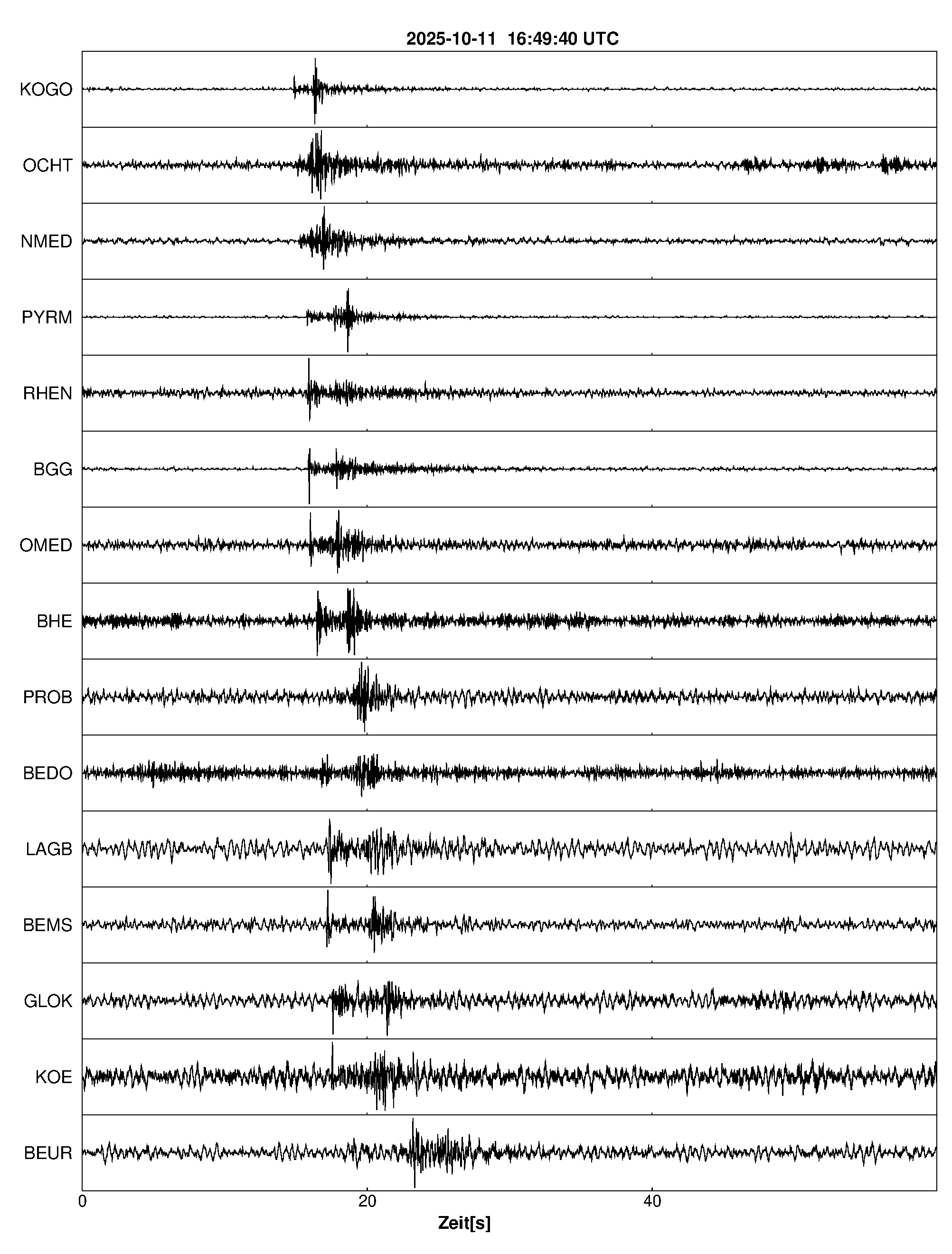 Pfadnavigation Startseite Geologischer Dienst Erdbeben Aktuelle Erdbeben Erdbeben bei Lonnig, Lkrs. Mayen-Koblenz, RP Teilen Erdbeben bei Lonnig, Lkrs. Mayen-Koblenz, RP Erdbeben bei: Lonnig, Lkrs. Mayen-Koblenz, RP Datum/Uhrzeit: am 11.10.2025 um 18:49 Uhr Ortszeit (MESZ) Stärke: 0.5 (Magnitude auf der Richter-Skala) Epizentrum: 50.32° N ㅤ 7.41° E Herdtiefe: ca. 10 km unter der Erdoberfläche Bemerkung: sehr schwaches Erdbeben Seismogramme ausgewählter Erdbebenmessstationen: Erläuterungen: Datum/Uhrzeit:Datum und Zeit des Erdbebens in Ortszeit, also MEZ oder MESZ; Epizentrum:Punkt an der Erdoberfläche über dem Hypozentrum (Lage des Erdbebenherdes in der Tiefe); Magnitude:Erdbebenstärke auf der Richterskala (Lokalmagnitude ML); Herdtiefe:Tiefe des Erdbebens (Hypozentrums) in Kilometern unter NN. Seismogramme:Details zu den Erdbebenmessstationen finden sich im Kartenviewer des LGRB (Baden-Württemberg) und im Kartenviewer des LGB (Rheinland-Pfalz).