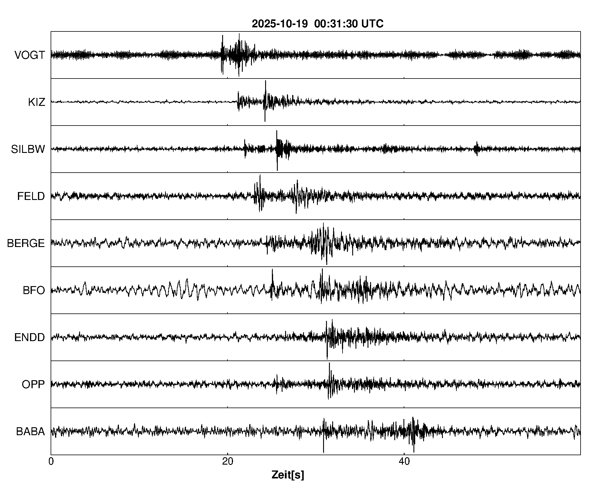 Pfadnavigation Startseite Geologischer Dienst Erdbeben Aktuelle Erdbeben Erdbeben bei Teningen, Lkrs. Emmendingen, BW Teilen Erdbeben bei Teningen, Lkrs. Emmendingen, BW Erdbeben bei: Teningen, Lkrs. Emmendingen, BW Datum/Uhrzeit: am 19.10.2025 um 02:31 Uhr Ortszeit (MESZ) Stärke: 0.4 (Magnitude auf der Richter-Skala) Epizentrum: 48.14° N ㅤ 7.81° E Herdtiefe: ca. 3 km unter der Erdoberfläche Bemerkung: sehr schwaches Erdbeben Seismogramme ausgewählter Erdbebenmessstationen: Erläuterungen: Datum/Uhrzeit:Datum und Zeit des Erdbebens in Ortszeit, also MEZ oder MESZ; Epizentrum:Punkt an der Erdoberfläche über dem Hypozentrum (Lage des Erdbebenherdes in der Tiefe); Magnitude:Erdbebenstärke auf der Richterskala (Lokalmagnitude ML); Herdtiefe:Tiefe des Erdbebens (Hypozentrums) in Kilometern unter NN. Seismogramme:Details zu den Erdbebenmessstationen finden sich im Kartenviewer des LGRB (Baden-Württemberg) und im Kartenviewer des LGB (Rheinland-Pfalz).