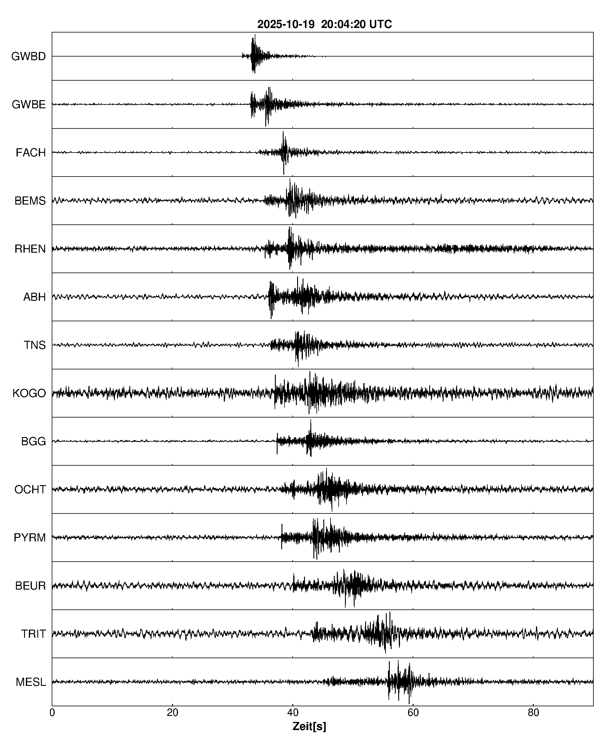 Pfadnavigation Startseite Geologischer Dienst Erdbeben Aktuelle Erdbeben Erdbeben bei Heidenrod, Rheingau-Taunus-Kreis, HS Teilen Erdbeben bei Heidenrod, Rheingau-Taunus-Kreis, HS Erdbeben außerhalb von Baden-Württemberg und Rheinland-Pfalz:Die maßgeblichen Angaben veröffentlicht der lokal zuständige Erdbebendienst. Erdbeben bei: Heidenrod, Rheingau-Taunus-Kreis, HS Datum/Uhrzeit: am 19.10.2025 um 22:04 Uhr Ortszeit (MESZ) Stärke: 1.0 (Magnitude auf der Richter-Skala) Epizentrum: 50.11° N ㅤ 7.95° E Herdtiefe: ca. 12 km unter der Erdoberfläche Bemerkung: sehr schwaches Erdbeben Seismogramme ausgewählter Erdbebenmessstationen: Erläuterungen: Datum/Uhrzeit:Datum und Zeit des Erdbebens in Ortszeit, also MEZ oder MESZ; Epizentrum:Punkt an der Erdoberfläche über dem Hypozentrum (Lage des Erdbebenherdes in der Tiefe); Magnitude:Erdbebenstärke auf der Richterskala (Lokalmagnitude ML); Herdtiefe:Tiefe des Erdbebens (Hypozentrums) in Kilometern unter NN. Seismogramme:Details zu den Erdbebenmessstationen finden sich im Kartenviewer des LGRB (Baden-Württemberg) und im Kartenviewer des LGB (Rheinland-Pfalz).