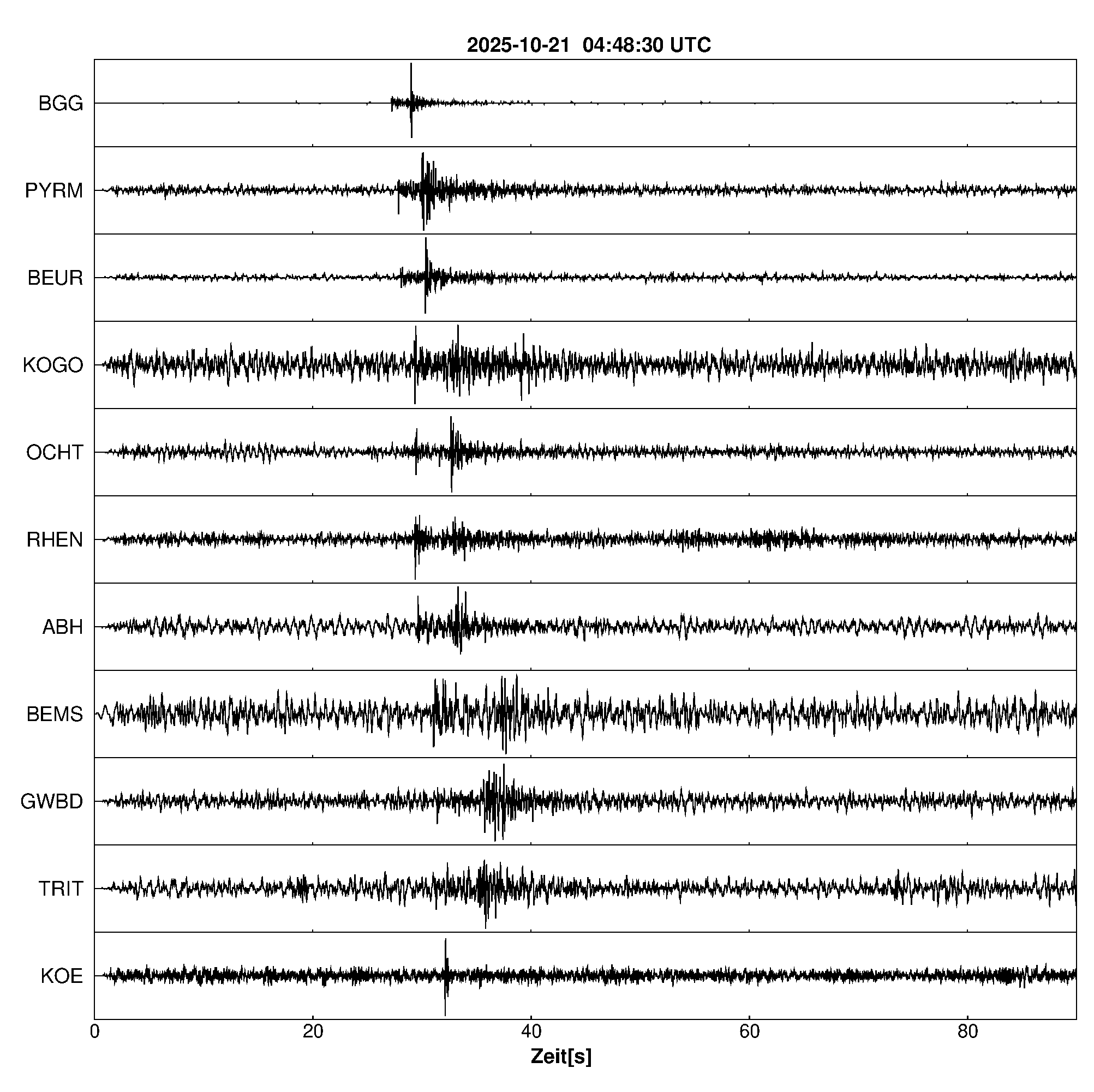 Pfadnavigation Startseite Geologischer Dienst Erdbeben Aktuelle Erdbeben Erdbeben bei Mörsdorf, Rhein-Hunsrück-Kreis, RP Teilen Erdbeben bei Mörsdorf, Rhein-Hunsrück-Kreis, RP Erdbeben bei: Mörsdorf, Rhein-Hunsrück-Kreis, RP Datum/Uhrzeit: am 21.10.2025 um 06:48 Uhr Ortszeit (MESZ) Stärke: 0.8 (Magnitude auf der Richter-Skala) Epizentrum: 50.1° N ㅤ 7.36° E Herdtiefe: ca. 9 km unter der Erdoberfläche Bemerkung: sehr schwaches Erdbeben Seismogramme ausgewählter Erdbebenmessstationen: Erläuterungen: Datum/Uhrzeit:Datum und Zeit des Erdbebens in Ortszeit, also MEZ oder MESZ; Epizentrum:Punkt an der Erdoberfläche über dem Hypozentrum (Lage des Erdbebenherdes in der Tiefe); Magnitude:Erdbebenstärke auf der Richterskala (Lokalmagnitude ML); Herdtiefe:Tiefe des Erdbebens (Hypozentrums) in Kilometern unter NN. Seismogramme:Details zu den Erdbebenmessstationen finden sich im Kartenviewer des LGRB (Baden-Württemberg) und im Kartenviewer des LGB (Rheinland-Pfalz).