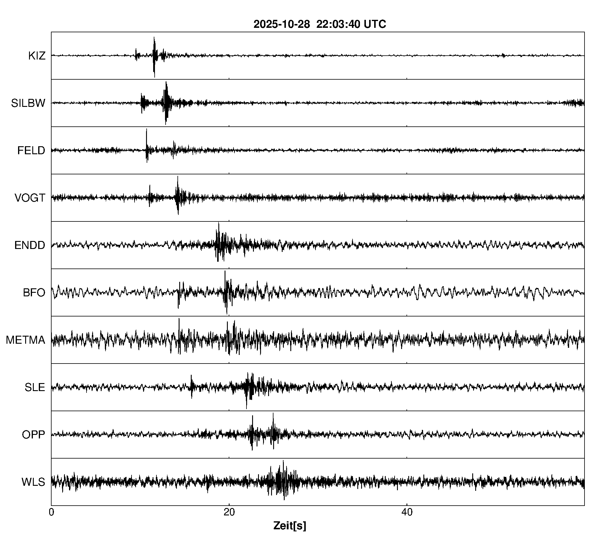 Pfadnavigation Startseite Geologischer Dienst Erdbeben Aktuelle Erdbeben Erdbeben bei Glottertal, Lkrs. Breisgau-H., BW Teilen Erdbeben bei Glottertal, Lkrs. Breisgau-H., BW Erdbeben bei: Glottertal, Lkrs. Breisgau-H., BW Datum/Uhrzeit: am 28.10.2025 um 23:03 Uhr Ortszeit (MEZ) Stärke: 0.9 (Magnitude auf der Richter-Skala) Epizentrum: 48.05° N ㅤ 7.94° E Herdtiefe: ca. 11 km unter der Erdoberfläche Bemerkung: sehr schwaches Erdbeben Seismogramme ausgewählter Erdbebenmessstationen: Erläuterungen: Datum/Uhrzeit:Datum und Zeit des Erdbebens in Ortszeit, also MEZ oder MESZ; Epizentrum:Punkt an der Erdoberfläche über dem Hypozentrum (Lage des Erdbebenherdes in der Tiefe); Magnitude:Erdbebenstärke auf der Richterskala (Lokalmagnitude ML); Herdtiefe:Tiefe des Erdbebens (Hypozentrums) in Kilometern unter NN. Seismogramme:Details zu den Erdbebenmessstationen finden sich im Kartenviewer des LGRB (Baden-Württemberg) und im Kartenviewer des LGB (Rheinland-Pfalz).
