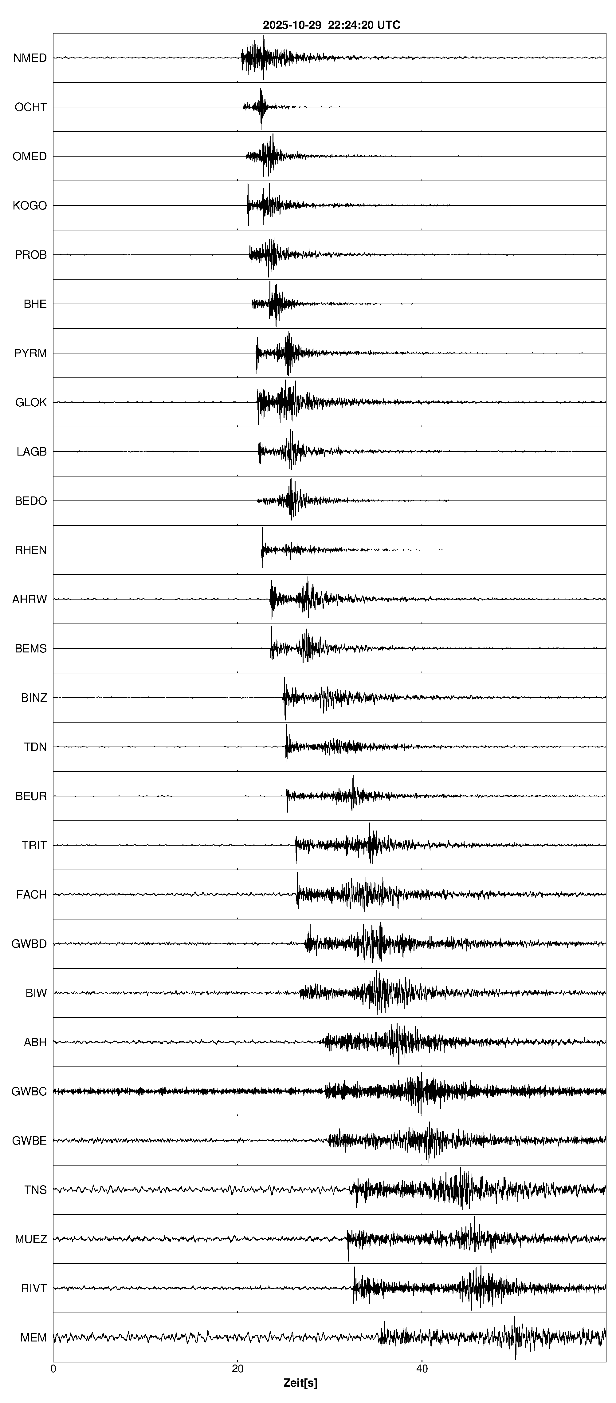 Pfadnavigation Startseite Geologischer Dienst Erdbeben Aktuelle Erdbeben Erdbeben bei Kretz, Lkrs. Mayen-Koblenz, RP Teilen Erdbeben bei Kretz, Lkrs. Mayen-Koblenz, RP Erdbeben bei: Kretz, Lkrs. Mayen-Koblenz, RP Datum/Uhrzeit: am 29.10.2025 um 23:24 Uhr Ortszeit (MEZ) Stärke: 1.5 (Magnitude auf der Richter-Skala) Epizentrum: 50.39° N ㅤ 7.36° E Herdtiefe: ca. 9 km unter der Erdoberfläche Bemerkung: sehr schwaches Erdbeben Seismogramme ausgewählter Erdbebenmessstationen: Erläuterungen: Datum/Uhrzeit:Datum und Zeit des Erdbebens in Ortszeit, also MEZ oder MESZ; Epizentrum:Punkt an der Erdoberfläche über dem Hypozentrum (Lage des Erdbebenherdes in der Tiefe); Magnitude:Erdbebenstärke auf der Richterskala (Lokalmagnitude ML); Herdtiefe:Tiefe des Erdbebens (Hypozentrums) in Kilometern unter NN. Seismogramme:Details zu den Erdbebenmessstationen finden sich im Kartenviewer des LGRB (Baden-Württemberg) und im Kartenviewer des LGB (Rheinland-Pfalz).