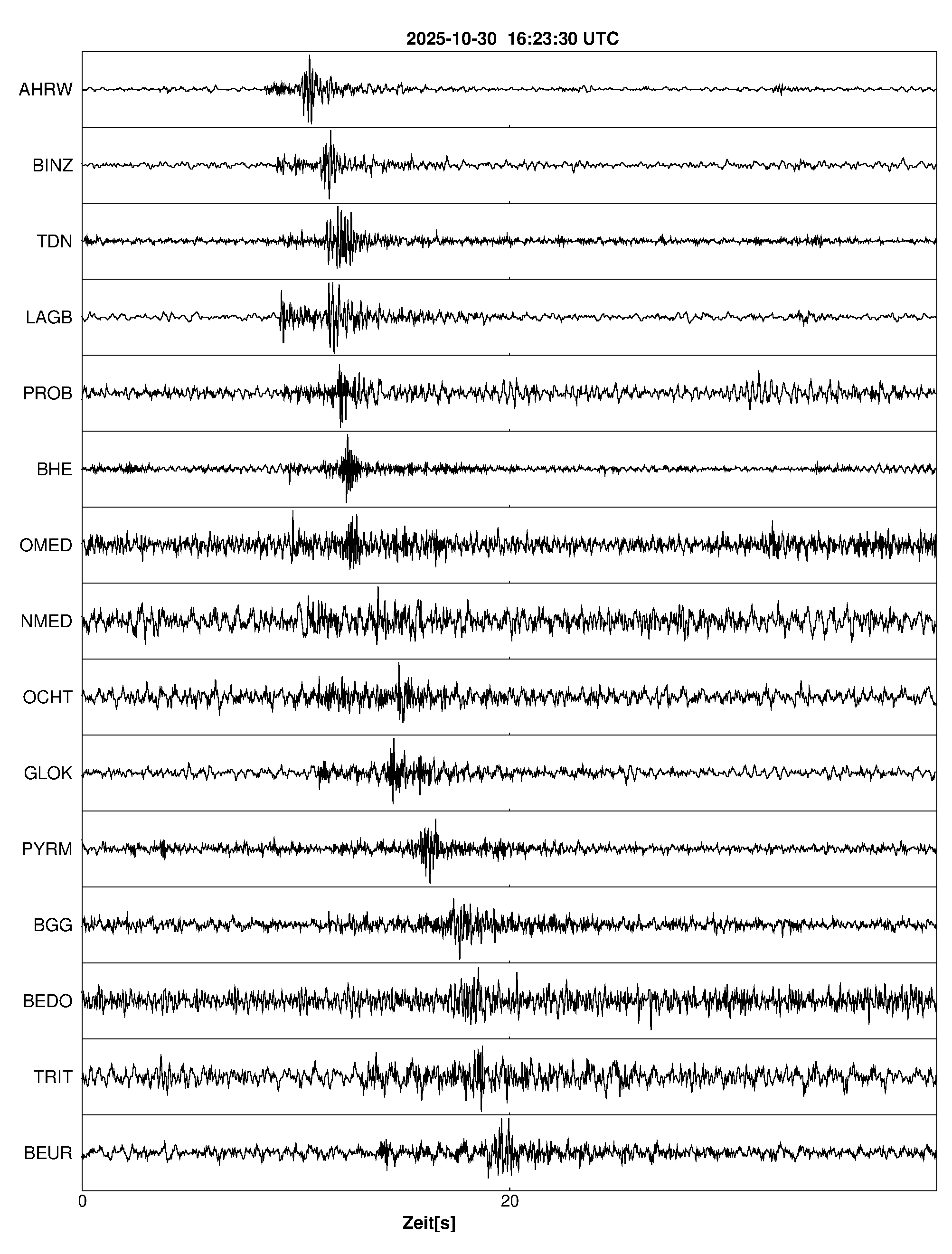 Pfadnavigation Startseite Geologischer Dienst Erdbeben Aktuelle Erdbeben Erdbeben bei Kesseling, Lkrs. Ahrweiler, RP Teilen Erdbeben bei Kesseling, Lkrs. Ahrweiler, RP Erdbeben bei: Kesseling, Lkrs. Ahrweiler, RP Datum/Uhrzeit: am 30.10.2025 um 17:23 Uhr Ortszeit (MEZ) Stärke: 0.6 (Magnitude auf der Richter-Skala) Epizentrum: 50.48° N ㅤ 7.06° E Herdtiefe: ca. 12 km unter der Erdoberfläche Bemerkung: sehr schwaches Erdbeben Seismogramme ausgewählter Erdbebenmessstationen: Erläuterungen: Datum/Uhrzeit:Datum und Zeit des Erdbebens in Ortszeit, also MEZ oder MESZ; Epizentrum:Punkt an der Erdoberfläche über dem Hypozentrum (Lage des Erdbebenherdes in der Tiefe); Magnitude:Erdbebenstärke auf der Richterskala (Lokalmagnitude ML); Herdtiefe:Tiefe des Erdbebens (Hypozentrums) in Kilometern unter NN. Seismogramme:Details zu den Erdbebenmessstationen finden sich im Kartenviewer des LGRB (Baden-Württemberg) und im Kartenviewer des LGB (Rheinland-Pfalz).