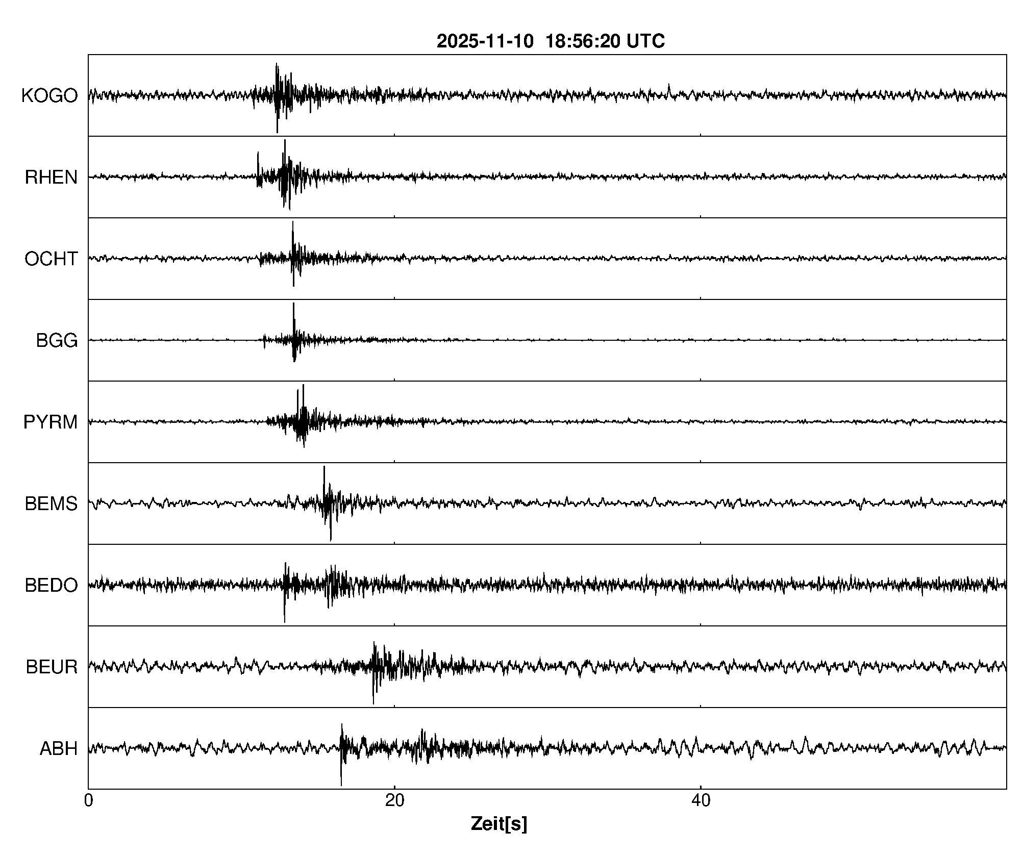 Pfadnavigation Startseite Geologischer Dienst Erdbeben Aktuelle Erdbeben Erdbeben bei Niederfell, Lkrs. Mayen-Koblenz, RP Teilen Erdbeben bei Niederfell, Lkrs. Mayen-Koblenz, RP Erdbeben bei: Niederfell, Lkrs. Mayen-Koblenz, RP Datum/Uhrzeit: am 10.11.2025 um 19:56 Uhr Ortszeit (MEZ) Stärke: 0.7 (Magnitude auf der Richter-Skala) Epizentrum: 50.28° N ㅤ 7.47° E Herdtiefe: ca. 11 km unter der Erdoberfläche Bemerkung: sehr schwaches Erdbeben Seismogramme ausgewählter Erdbebenmessstationen: Erläuterungen: Datum/Uhrzeit:Datum und Zeit des Erdbebens in Ortszeit, also MEZ oder MESZ; Epizentrum:Punkt an der Erdoberfläche über dem Hypozentrum (Lage des Erdbebenherdes in der Tiefe); Magnitude:Erdbebenstärke auf der Richterskala (Lokalmagnitude ML); Herdtiefe:Tiefe des Erdbebens (Hypozentrums) in Kilometern unter NN. Seismogramme:Details zu den Erdbebenmessstationen finden sich im Kartenviewer des LGRB (Baden-Württemberg) und im Kartenviewer des LGB (Rheinland-Pfalz).