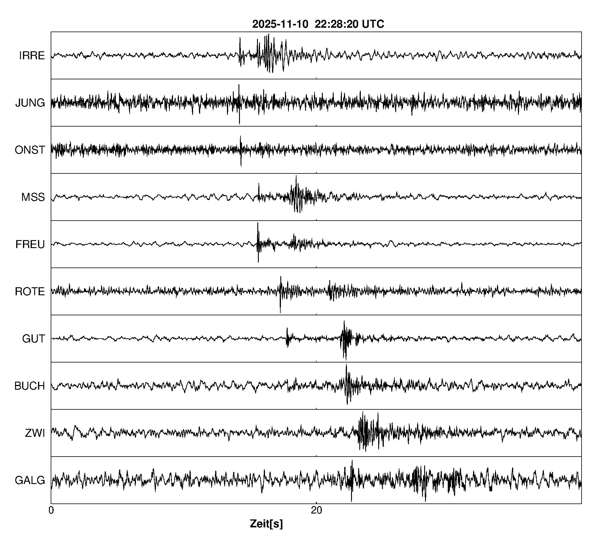 Pfadnavigation Startseite Geologischer Dienst Erdbeben Aktuelle Erdbeben Erdbeben bei Hechingen, Zollernalbkreis, BW Teilen Erdbeben bei Hechingen, Zollernalbkreis, BW Erdbeben bei: Hechingen, Zollernalbkreis, BW Datum/Uhrzeit: am 10.11.2025 um 23:28 Uhr Ortszeit (MEZ) Stärke: 0.6 (Magnitude auf der Richter-Skala) Epizentrum: 48.34° N ㅤ 8.95° E Herdtiefe: ca. 11 km unter der Erdoberfläche Bemerkung: sehr schwaches Erdbeben Seismogramme ausgewählter Erdbebenmessstationen: Erläuterungen: Datum/Uhrzeit:Datum und Zeit des Erdbebens in Ortszeit, also MEZ oder MESZ; Epizentrum:Punkt an der Erdoberfläche über dem Hypozentrum (Lage des Erdbebenherdes in der Tiefe); Magnitude:Erdbebenstärke auf der Richterskala (Lokalmagnitude ML); Herdtiefe:Tiefe des Erdbebens (Hypozentrums) in Kilometern unter NN. Seismogramme:Details zu den Erdbebenmessstationen finden sich im Kartenviewer des LGRB (Baden-Württemberg) und im Kartenviewer des LGB (Rheinland-Pfalz).