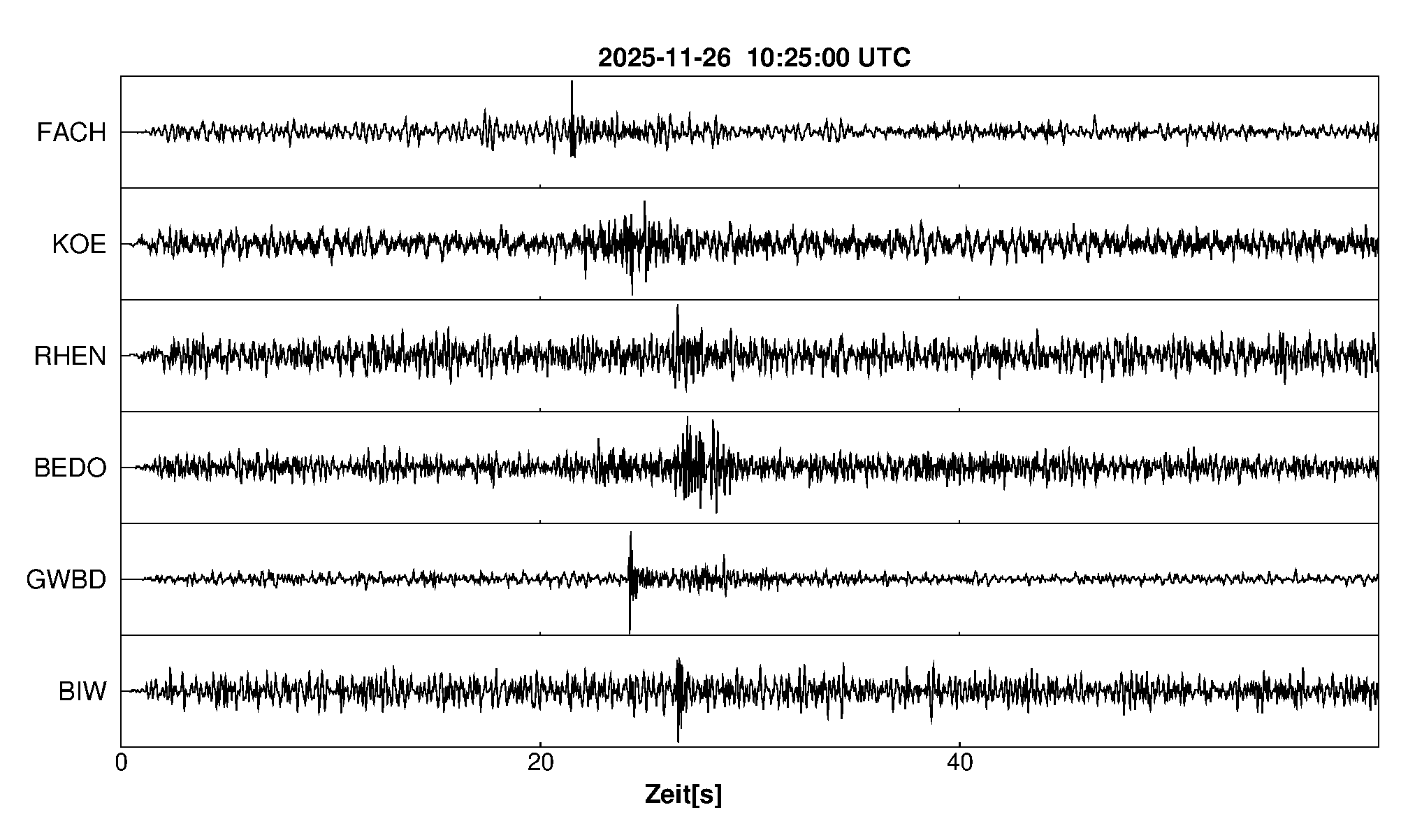 Pfadnavigation Startseite Geologischer Dienst Erdbeben Aktuelle Erdbeben Erdbeben bei Horhausen, Rhein-Lahn-Kreis, RP Teilen Erdbeben bei Horhausen, Rhein-Lahn-Kreis, RP Erdbeben bei: Horhausen, Rhein-Lahn-Kreis, RP Datum/Uhrzeit: am 26.11.2025 um 11:25 Uhr Ortszeit (MEZ) Stärke: 0.6 (Magnitude auf der Richter-Skala) Epizentrum: 50.35° N ㅤ 7.88° E Herdtiefe: ca. 8 km unter der Erdoberfläche Bemerkung: sehr schwaches Erdbeben Seismogramme ausgewählter Erdbebenmessstationen: Erläuterungen: Datum/Uhrzeit:Datum und Zeit des Erdbebens in Ortszeit, also MEZ oder MESZ; Epizentrum:Punkt an der Erdoberfläche über dem Hypozentrum (Lage des Erdbebenherdes in der Tiefe); Magnitude:Erdbebenstärke auf der Richterskala (Lokalmagnitude ML); Herdtiefe:Tiefe des Erdbebens (Hypozentrums) in Kilometern unter NN. Seismogramme:Details zu den Erdbebenmessstationen finden sich im Kartenviewer des LGRB (Baden-Württemberg) und im Kartenviewer des LGB (Rheinland-Pfalz).