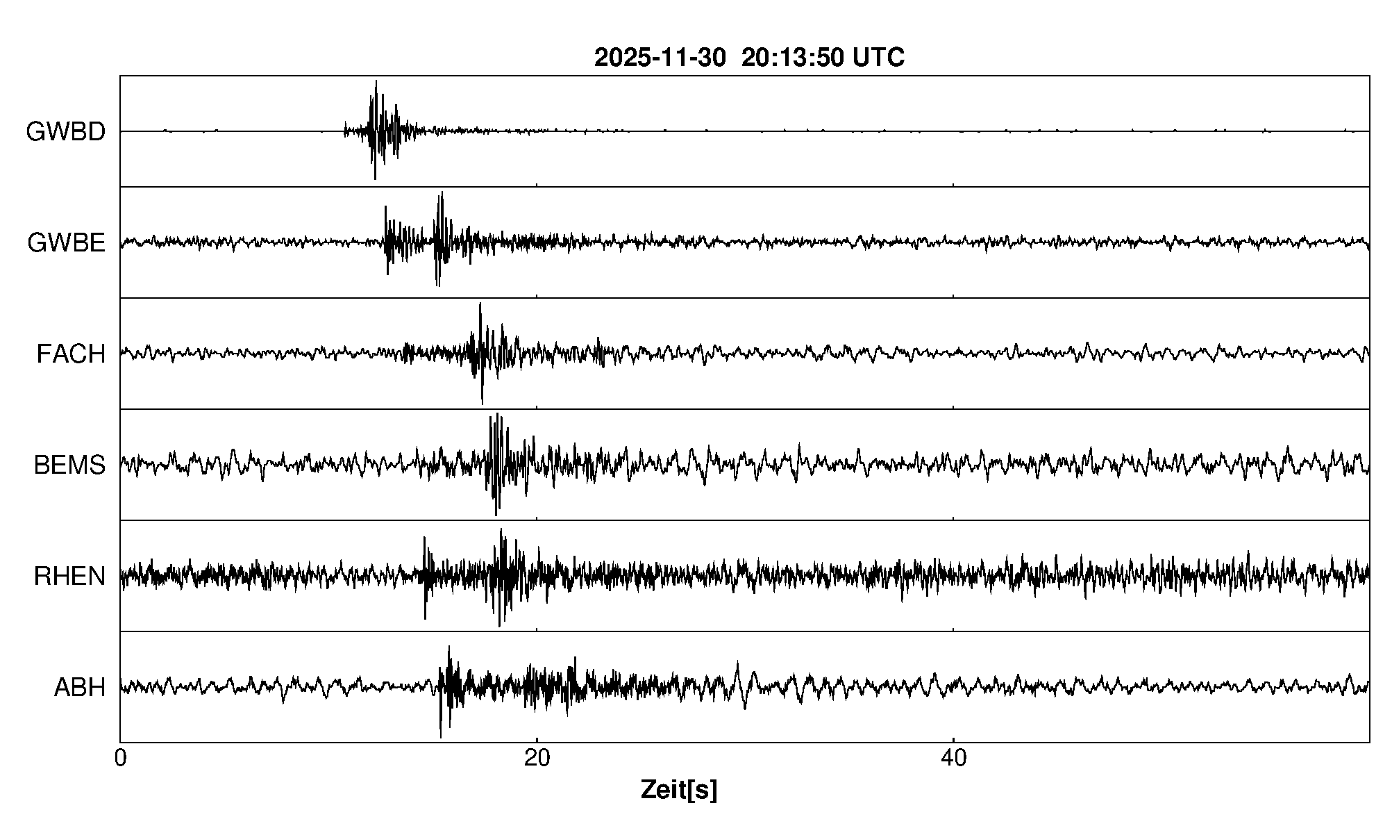 Pfadnavigation Startseite Geologischer Dienst Erdbeben Aktuelle Erdbeben Erdbeben bei Welterod, Rhein-Lahn-Kreis, RP Teilen Erdbeben bei Welterod, Rhein-Lahn-Kreis, RP Erdbeben bei: Welterod, Rhein-Lahn-Kreis, RP Datum/Uhrzeit: am 30.11.2025 um 21:13 Uhr Ortszeit (MEZ) Stärke: 0.6 (Magnitude auf der Richter-Skala) Epizentrum: 50.13° N ㅤ 7.92° E Herdtiefe: ca. 9 km unter der Erdoberfläche Bemerkung: sehr schwaches Erdbeben Seismogramme ausgewählter Erdbebenmessstationen: Erläuterungen: Datum/Uhrzeit:Datum und Zeit des Erdbebens in Ortszeit, also MEZ oder MESZ; Epizentrum:Punkt an der Erdoberfläche über dem Hypozentrum (Lage des Erdbebenherdes in der Tiefe); Magnitude:Erdbebenstärke auf der Richterskala (Lokalmagnitude ML); Herdtiefe:Tiefe des Erdbebens (Hypozentrums) in Kilometern unter NN. Seismogramme:Details zu den Erdbebenmessstationen finden sich im Kartenviewer des LGRB (Baden-Württemberg) und im Kartenviewer des LGB (Rheinland-Pfalz).