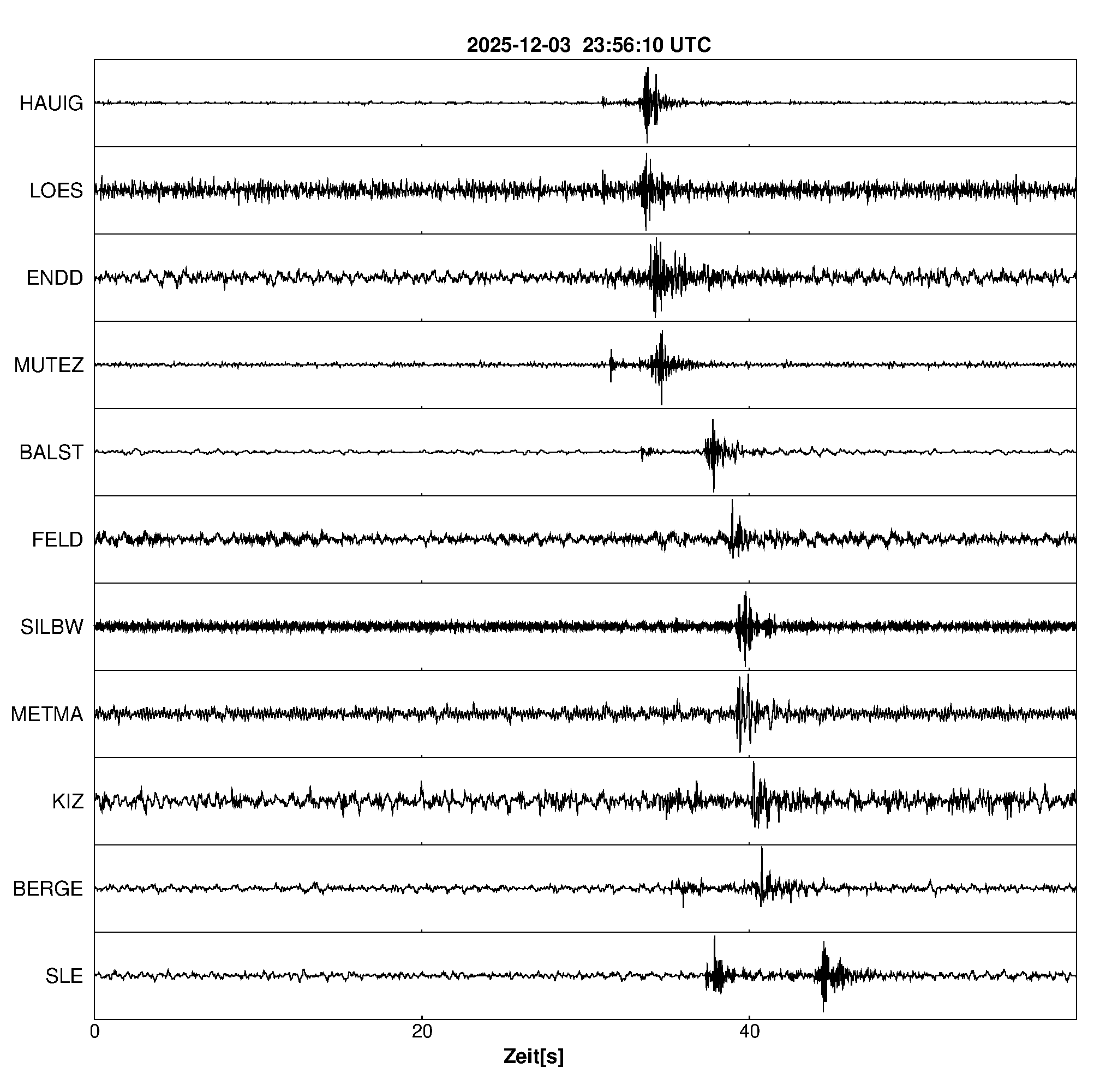 Pfadnavigation Startseite Geologischer Dienst Erdbeben Aktuelle Erdbeben Erdbeben bei Rheinfelden (Baden), Lkrs. Lörrach, BW Teilen Erdbeben bei Rheinfelden (Baden), Lkrs. Lörrach, BW Erdbeben bei: Rheinfelden (Baden), Lkrs. Lörrach, BW Datum/Uhrzeit: am 04.12.2025 um 00:56 Uhr Ortszeit (MEZ) Stärke: 0.7 (Magnitude auf der Richter-Skala) Epizentrum: 47.61° N ㅤ 7.79° E Herdtiefe: ca. 19 km unter der Erdoberfläche Bemerkung: sehr schwaches Erdbeben Seismogramme ausgewählter Erdbebenmessstationen: Erläuterungen: Datum/Uhrzeit:Datum und Zeit des Erdbebens in Ortszeit, also MEZ oder MESZ; Epizentrum:Punkt an der Erdoberfläche über dem Hypozentrum (Lage des Erdbebenherdes in der Tiefe); Magnitude:Erdbebenstärke auf der Richterskala (Lokalmagnitude ML); Herdtiefe:Tiefe des Erdbebens (Hypozentrums) in Kilometern unter NN. Seismogramme:Details zu den Erdbebenmessstationen finden sich im Kartenviewer des LGRB (Baden-Württemberg) und im Kartenviewer des LGB (Rheinland-Pfalz).