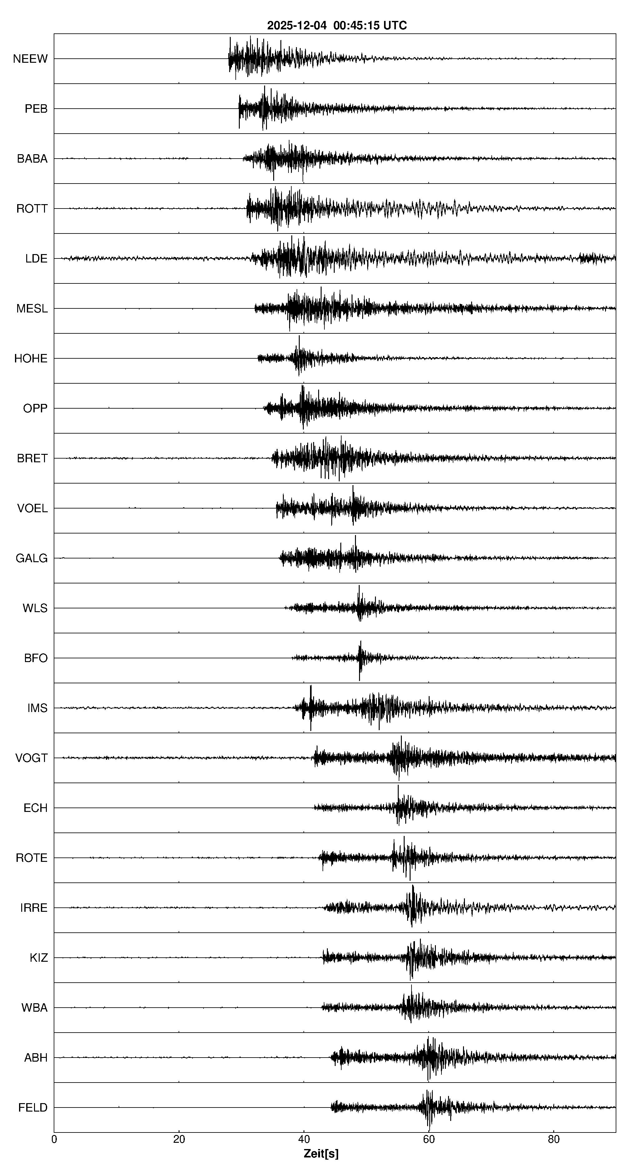 Pfadnavigation Startseite Geologischer Dienst Erdbeben Aktuelle Erdbeben Erdbeben bei Rittershoffen, Dep. Bas-Rhin, F Teilen Erdbeben bei Rittershoffen, Dep. Bas-Rhin, F Erdbeben außerhalb von Baden-Württemberg und Rheinland-Pfalz:Die maßgeblichen Angaben veröffentlicht der lokal zuständige Erdbebendienst. Erdbeben bei: Rittershoffen, Dep. Bas-Rhin, F Datum/Uhrzeit: am 04.12.2025 um 01:45 Uhr Ortszeit (MEZ) Stärke: 2.2 (Magnitude auf der Richter-Skala) Epizentrum: 48.91° N ㅤ 7.93° E Herdtiefe: ca. 5 km unter der Erdoberfläche Bemerkung: wahrscheinlich induziertes Erdbeben; schwaches Erdbeben Seismogramme ausgewählter Erdbebenmessstationen: Erläuterungen: Datum/Uhrzeit:Datum und Zeit des Erdbebens in Ortszeit, also MEZ oder MESZ; Epizentrum:Punkt an der Erdoberfläche über dem Hypozentrum (Lage des Erdbebenherdes in der Tiefe); Magnitude:Erdbebenstärke auf der Richterskala (Lokalmagnitude ML); Herdtiefe:Tiefe des Erdbebens (Hypozentrums) in Kilometern unter NN. Seismogramme:Details zu den Erdbebenmessstationen finden sich im Kartenviewer des LGRB (Baden-Württemberg) und im Kartenviewer des LGB (Rheinland-Pfalz).