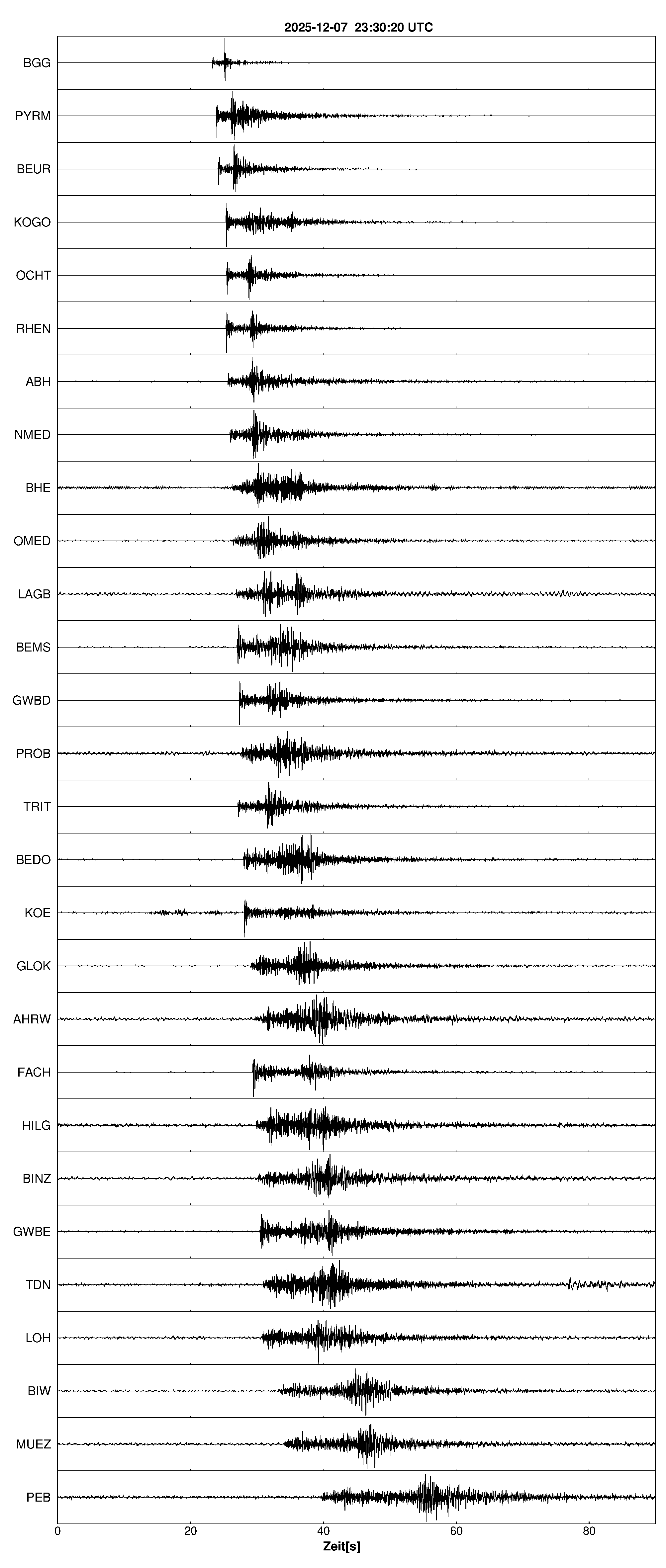 Pfadnavigation Startseite Geologischer Dienst Erdbeben Aktuelle Erdbeben Erdbeben bei Mörsdorf, Rhein-Hunsrück-Kreis, RP Teilen Erdbeben bei Mörsdorf, Rhein-Hunsrück-Kreis, RP Erdbeben bei: Mörsdorf, Rhein-Hunsrück-Kreis, RP Datum/Uhrzeit: am 08.12.2025 um 00:30 Uhr Ortszeit (MEZ) Stärke: 1.8 (Magnitude auf der Richter-Skala) Epizentrum: 50.1° N ㅤ 7.37° E Herdtiefe: ca. 9 km unter der Erdoberfläche Wahrnehmungen: vereinzelt wahrgenommen im Bereich um Mörsdorf Bemerkung: sehr schwaches Erdbeben Seismogramme ausgewählter Erdbebenmessstationen: Erläuterungen: Datum/Uhrzeit:Datum und Zeit des Erdbebens in Ortszeit, also MEZ oder MESZ; Epizentrum:Punkt an der Erdoberfläche über dem Hypozentrum (Lage des Erdbebenherdes in der Tiefe); Magnitude:Erdbebenstärke auf der Richterskala (Lokalmagnitude ML); Herdtiefe:Tiefe des Erdbebens (Hypozentrums) in Kilometern unter NN. Seismogramme:Details zu den Erdbebenmessstationen finden sich im Kartenviewer des LGRB (Baden-Württemberg) und im Kartenviewer des LGB (Rheinland-Pfalz).