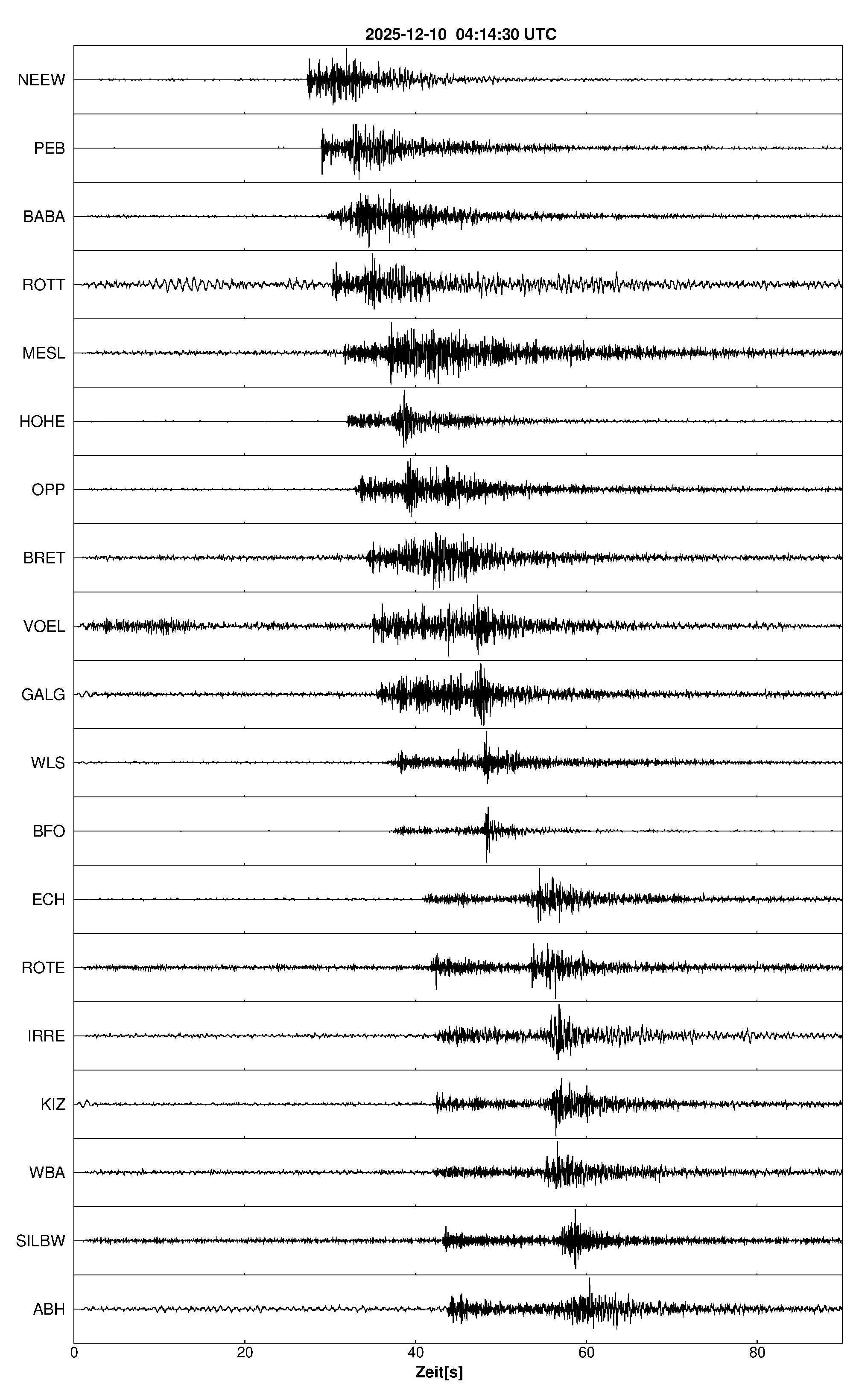 Seismogramme ausgewählter Erdbebenmessstationen: