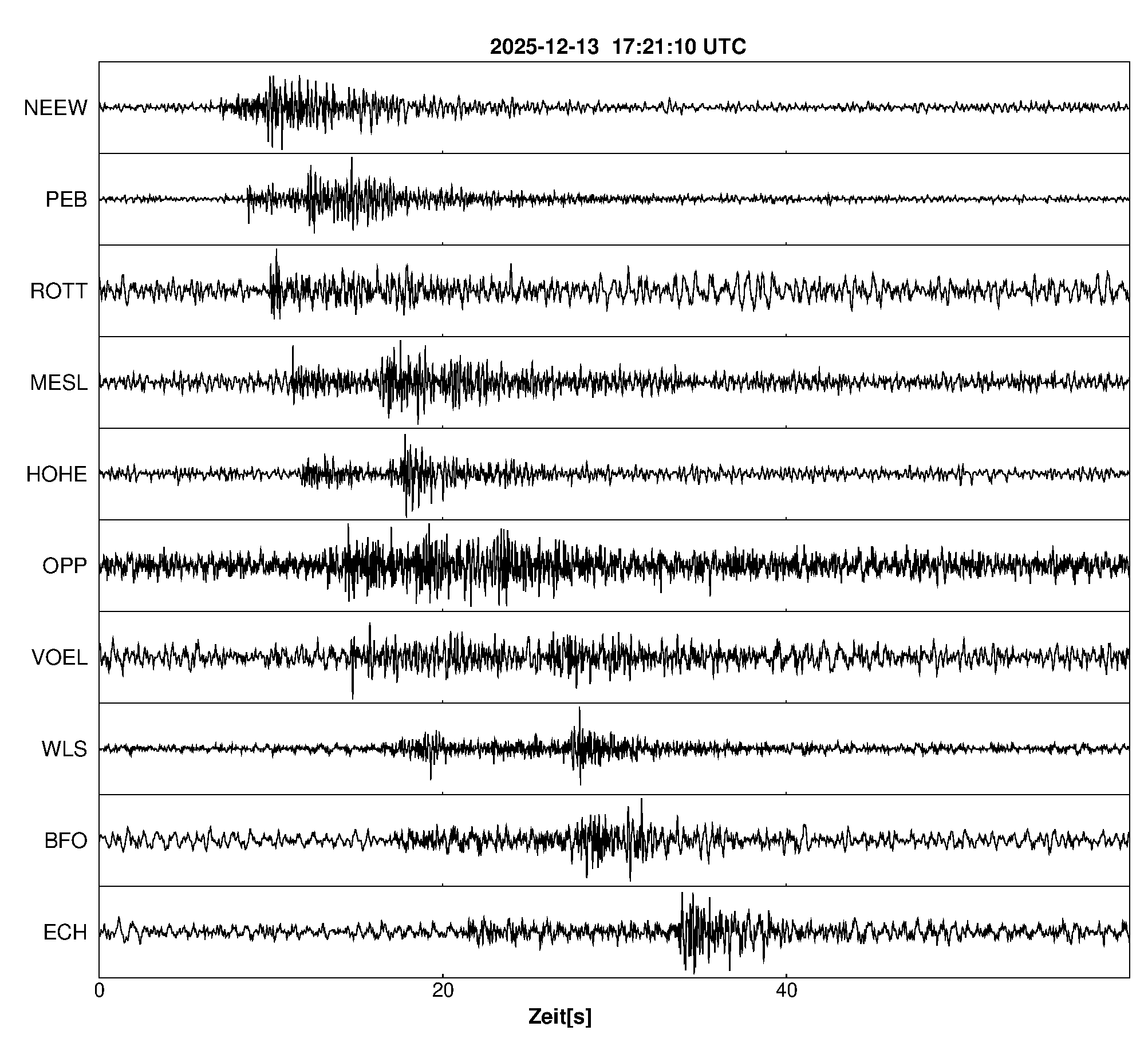 Pfadnavigation Startseite Geologischer Dienst Erdbeben Aktuelle Erdbeben Erdbeben bei Betschdorf, Dep. Bas-Rhin, F Teilen Erdbeben bei Betschdorf, Dep. Bas-Rhin, F Erdbeben außerhalb von Baden-Württemberg und Rheinland-Pfalz:Die maßgeblichen Angaben veröffentlicht der lokal zuständige Erdbebendienst. Erdbeben bei: Betschdorf, Dep. Bas-Rhin, F Datum/Uhrzeit: am 13.12.2025 um 18:21 Uhr Ortszeit (MEZ) Stärke: 0,8 (Magnitude auf der Richter-Skala) Epizentrum: 48,91° N ㅤ 7,93° E Herdtiefe: ca. 3 km unter der Erdoberfläche Bemerkung: wahrscheinlich induziertes Erdbeben; sehr schwaches Erdbeben Seismogramme ausgewählter Erdbebenmessstationen: Erläuterungen: Datum/Uhrzeit:Datum und Zeit des Erdbebens in Ortszeit, also MEZ oder MESZ; Epizentrum:Punkt an der Erdoberfläche über dem Hypozentrum (Lage des Erdbebenherdes in der Tiefe); Magnitude:Erdbebenstärke auf der Richterskala (Lokalmagnitude ML); Herdtiefe:Tiefe des Erdbebens (Hypozentrums) in Kilometern unter NN. Seismogramme:Details zu den Erdbebenmessstationen finden sich im Kartenviewer des LGRB (Baden-Württemberg) und im Kartenviewer des LGB (Rheinland-Pfalz).