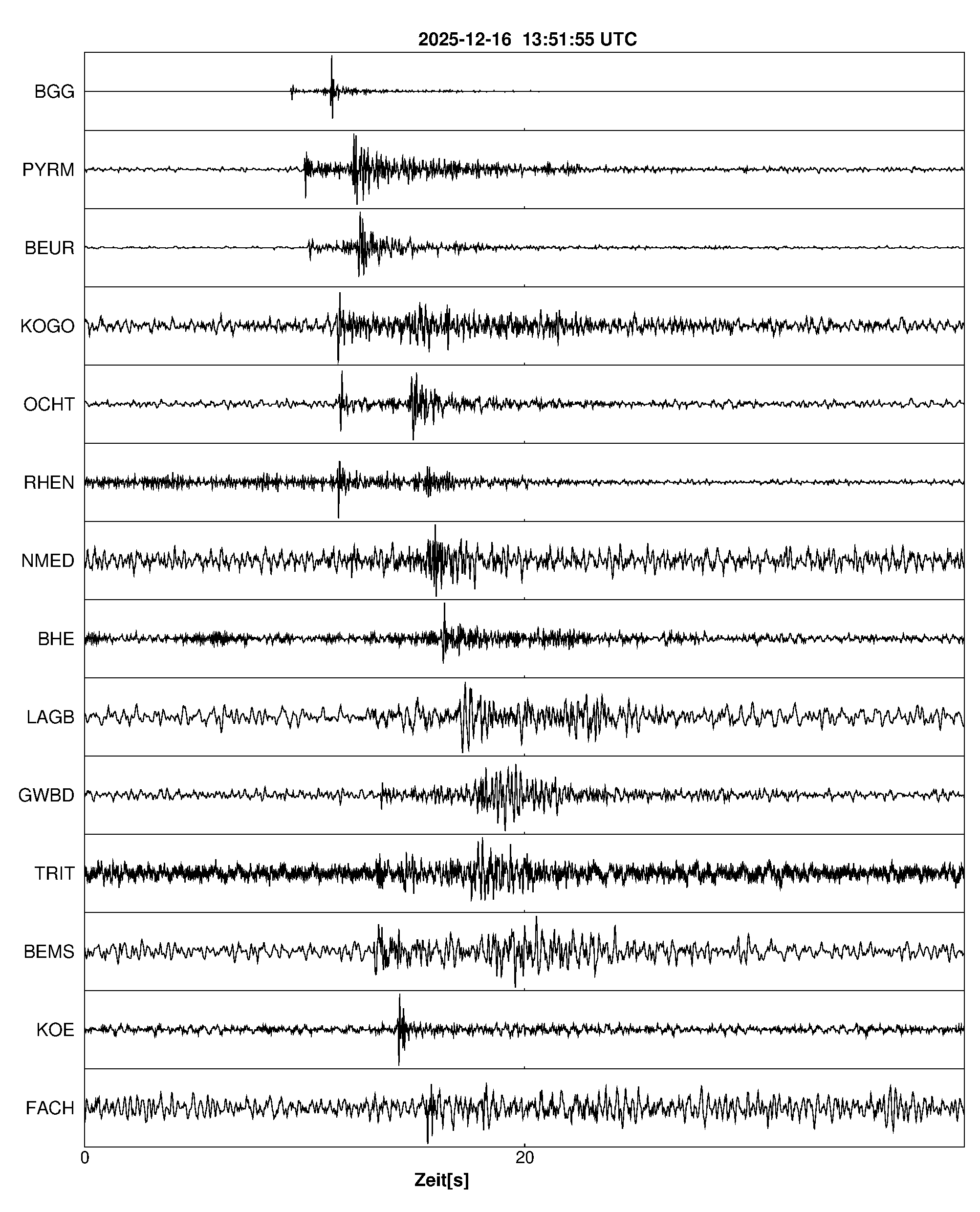 Pfadnavigation Startseite Geologischer Dienst Erdbeben Aktuelle Erdbeben Erdbeben bei Mörsdorf, Rhein-Hunsrück-Kreis, RP Teilen Erdbeben bei Mörsdorf, Rhein-Hunsrück-Kreis, RP Erdbeben bei: Mörsdorf, Rhein-Hunsrück-Kreis, RP Datum/Uhrzeit: am 16.12.2025 um 14:52 Uhr Ortszeit (MEZ) Stärke: 0.9 (Magnitude auf der Richter-Skala) Epizentrum: 50.09° N ㅤ 7.36° E Herdtiefe: ca. 10 km unter der Erdoberfläche Bemerkung: sehr schwaches Erdbeben Seismogramme ausgewählter Erdbebenmessstationen: Erläuterungen: Datum/Uhrzeit:Datum und Zeit des Erdbebens in Ortszeit, also MEZ oder MESZ; Epizentrum:Punkt an der Erdoberfläche über dem Hypozentrum (Lage des Erdbebenherdes in der Tiefe); Magnitude:Erdbebenstärke auf der Richterskala (Lokalmagnitude ML); Herdtiefe:Tiefe des Erdbebens (Hypozentrums) in Kilometern unter NN. Seismogramme:Details zu den Erdbebenmessstationen finden sich im Kartenviewer des LGRB (Baden-Württemberg) und im Kartenviewer des LGB (Rheinland-Pfalz).