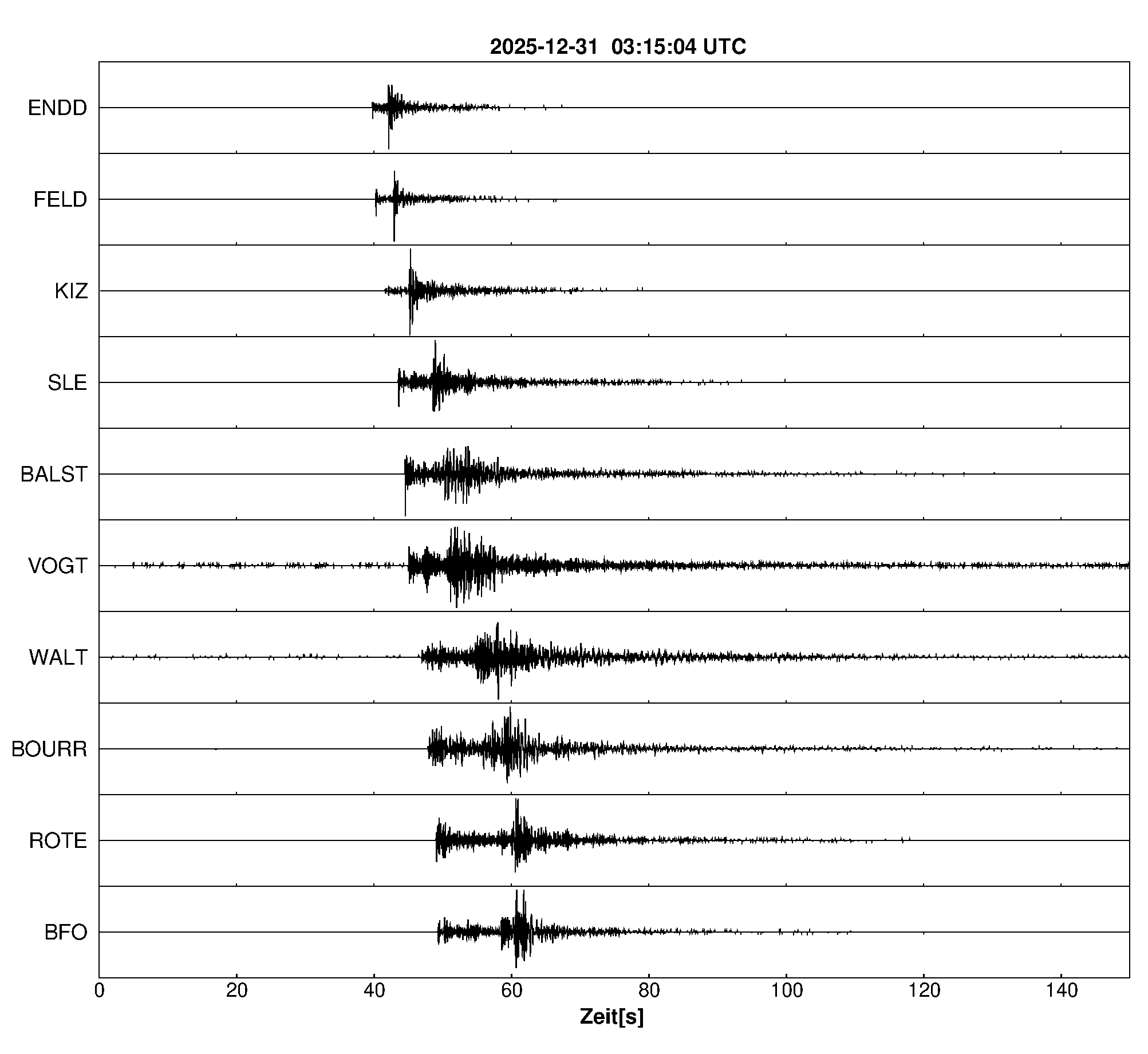 Seismogramme ausgewählter Erdbebenmessstationen: