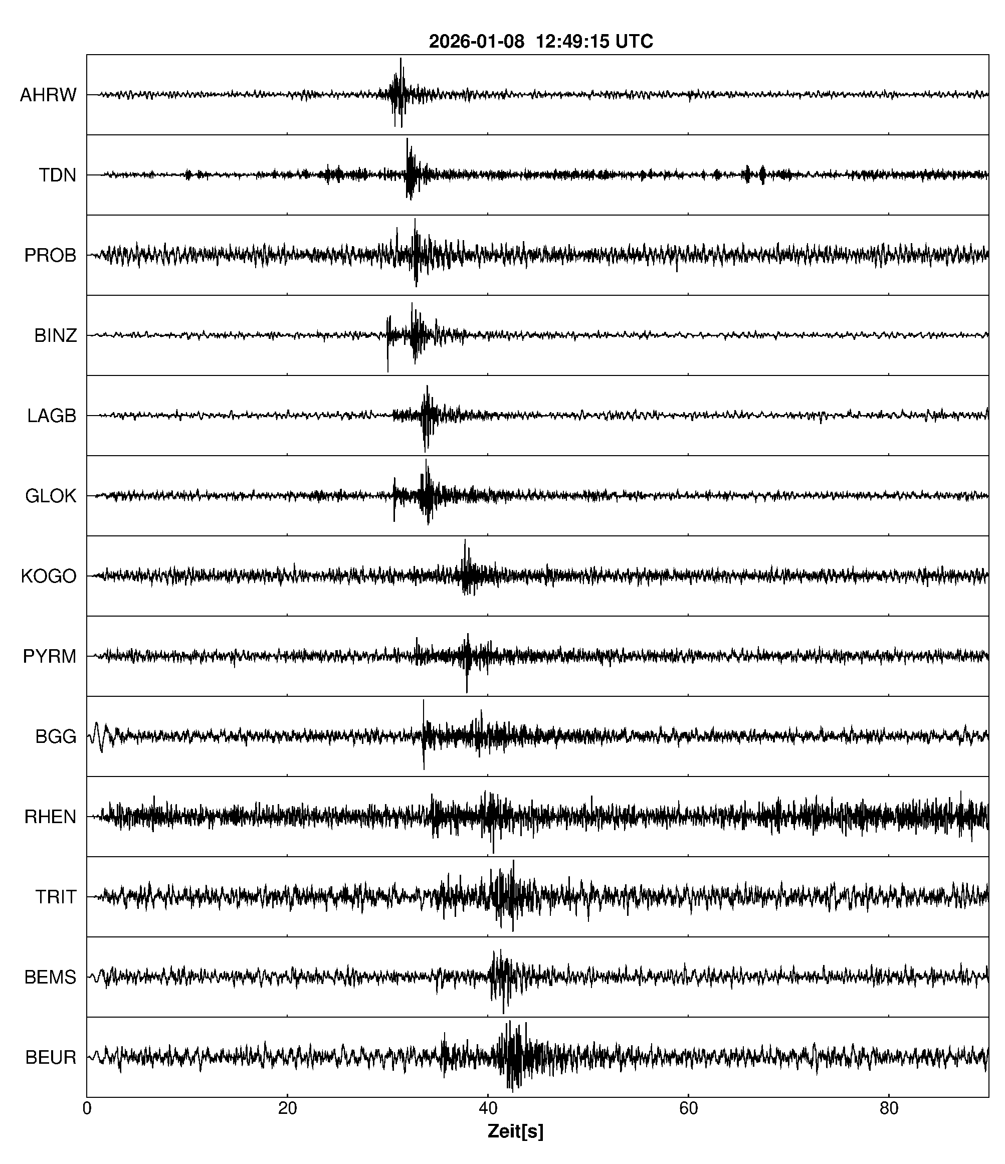 Pfadnavigation Startseite Geologischer Dienst Erdbeben Aktuelle Erdbeben Erdbeben bei Bad Neuenahr-Ahrweiler, Lkrs. Ahrweiler, RP Teilen Erdbeben bei Bad Neuenahr-Ahrweiler, Lkrs. Ahrweiler, RP Erdbeben bei: Bad Neuenahr-Ahrweiler, Lkrs. Ahrweiler, RP Datum/Uhrzeit: am 08.01.2026 um 13:49 Uhr Ortszeit (MEZ) Stärke: 0,9 (Magnitude auf der Richter-Skala) Epizentrum: 50,54° N ㅤ 7,12° E Herdtiefe: ca. 13 km unter der Erdoberfläche Bemerkung: sehr schwaches Erdbeben Seismogramme ausgewählter Erdbebenmessstationen: Erläuterungen: Datum/Uhrzeit:Datum und Zeit des Erdbebens in Ortszeit, also MEZ oder MESZ; Epizentrum:Punkt an der Erdoberfläche über dem Hypozentrum (Lage des Erdbebenherdes in der Tiefe); Magnitude:Erdbebenstärke auf der Richterskala (Lokalmagnitude ML); Herdtiefe:Tiefe des Erdbebens (Hypozentrums) in Kilometern unter NN. Seismogramme:Details zu den Erdbebenmessstationen finden sich im Kartenviewer des LGRB (Baden-Württemberg) und im Kartenviewer des LGB (Rheinland-Pfalz).