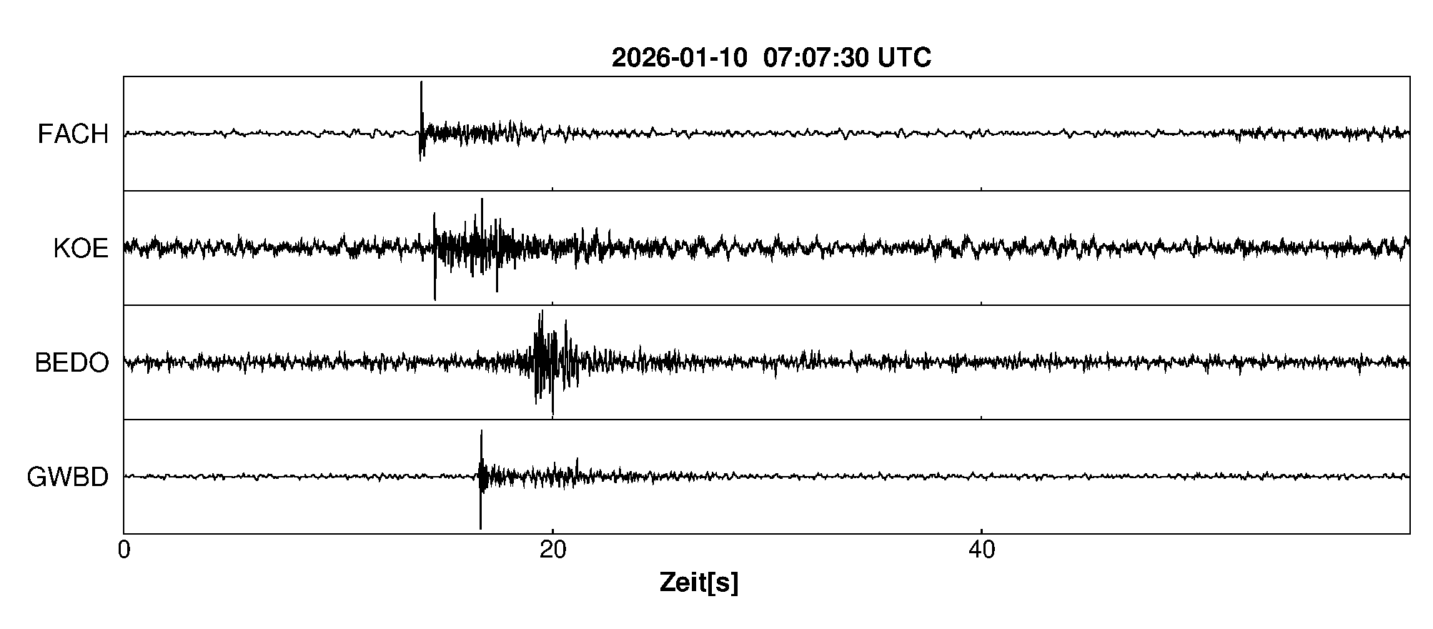 Pfadnavigation Startseite Geologischer Dienst Erdbeben Aktuelle Erdbeben Erdbeben bei Horhausen, Rhein-Lahn-Kreis, RP Teilen Erdbeben bei Horhausen, Rhein-Lahn-Kreis, RP Erdbeben bei: Horhausen, Rhein-Lahn-Kreis, RP Datum/Uhrzeit: am 10.01.2026 um 08:07 Uhr Ortszeit (MEZ) Stärke: 0,7 (Magnitude auf der Richter-Skala) Epizentrum: 50,35° N ㅤ 7,88° E Herdtiefe: ca. 9 km unter der Erdoberfläche Bemerkung: sehr schwaches Erdbeben Seismogramme ausgewählter Erdbebenmessstationen: Erläuterungen: Datum/Uhrzeit:Datum und Zeit des Erdbebens in Ortszeit, also MEZ oder MESZ; Epizentrum:Punkt an der Erdoberfläche über dem Hypozentrum (Lage des Erdbebenherdes in der Tiefe); Magnitude:Erdbebenstärke auf der Richterskala (Lokalmagnitude ML); Herdtiefe:Tiefe des Erdbebens (Hypozentrums) in Kilometern unter NN. Seismogramme:Details zu den Erdbebenmessstationen finden sich im Kartenviewer des LGRB (Baden-Württemberg) und im Kartenviewer des LGB (Rheinland-Pfalz).