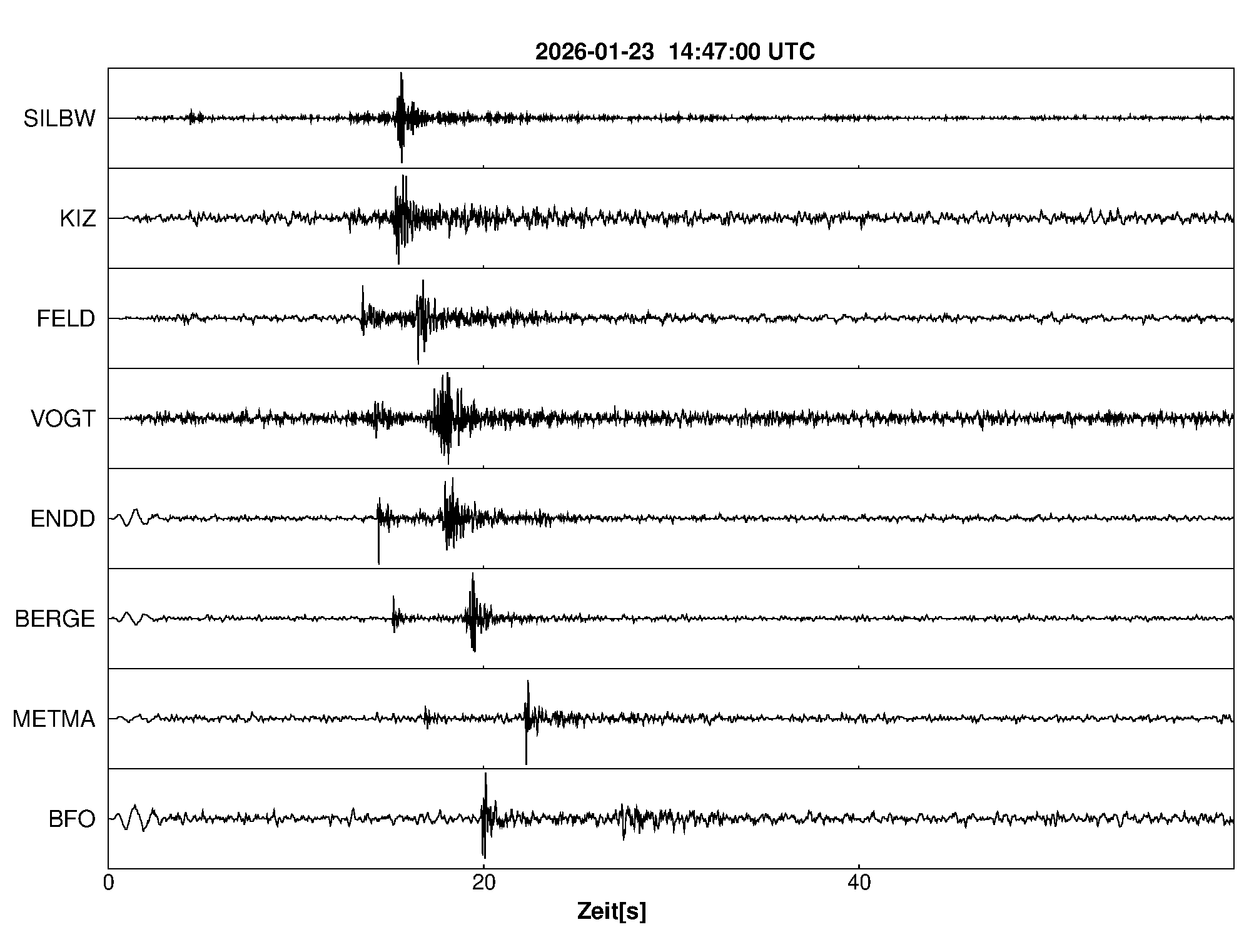 Pfadnavigation Startseite Geologischer Dienst Erdbeben Aktuelle Erdbeben Erdbeben bei Sölden, Lkrs. Breisgau-H., BW Teilen Erdbeben bei Sölden, Lkrs. Breisgau-H., BW Erdbeben bei: Sölden, Lkrs. Breisgau-H., BW Datum/Uhrzeit: am 23.01.2026 um 15:47 Uhr Ortszeit (MEZ) Stärke: 1,1 (Magnitude auf der Richter-Skala) Epizentrum: 47,92° N ㅤ 7,81° E Herdtiefe: ca. 17 km unter der Erdoberfläche Bemerkung: sehr schwaches Erdbeben Seismogramme ausgewählter Erdbebenmessstationen: Erläuterungen: Datum/Uhrzeit:Datum und Zeit des Erdbebens in Ortszeit, also MEZ oder MESZ; Epizentrum:Punkt an der Erdoberfläche über dem Hypozentrum (Lage des Erdbebenherdes in der Tiefe); Magnitude:Erdbebenstärke auf der Richterskala (Lokalmagnitude ML); Herdtiefe:Tiefe des Erdbebens (Hypozentrums) in Kilometern unter NN. Seismogramme:Details zu den Erdbebenmessstationen finden sich im Kartenviewer des LGRB (Baden-Württemberg) und im Kartenviewer des LGB (Rheinland-Pfalz).