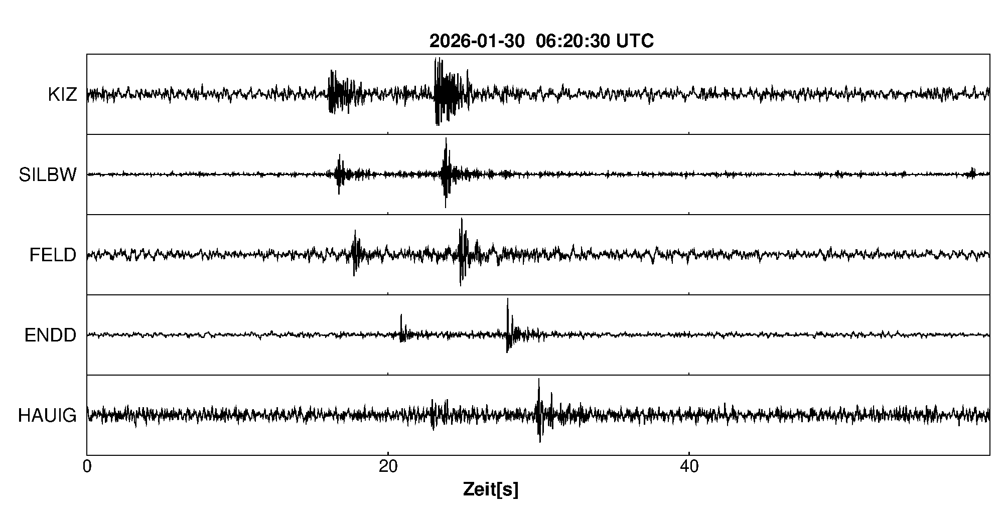 Pfadnavigation Startseite Geologischer Dienst Erdbeben Aktuelle Erdbeben Erdbeben bei Freiburg im Breisgau, BW Teilen Erdbeben bei Freiburg im Breisgau, BW Erdbeben bei: Freiburg im Breisgau, BW Datum/Uhrzeit: am 30.01.2026 um 07:20 Uhr Ortszeit (MEZ) Stärke: 0,6 (Magnitude auf der Richter-Skala) Epizentrum: 47,97° N ㅤ 7,86° E Herdtiefe: ca. 15 km unter der Erdoberfläche Bemerkung: sehr schwaches Erdbeben Seismogramme ausgewählter Erdbebenmessstationen: Erläuterungen: Datum/Uhrzeit:Datum und Zeit des Erdbebens in Ortszeit, also MEZ oder MESZ; Epizentrum:Punkt an der Erdoberfläche über dem Hypozentrum (Lage des Erdbebenherdes in der Tiefe); Magnitude:Erdbebenstärke auf der Richterskala (Lokalmagnitude ML); Herdtiefe:Tiefe des Erdbebens (Hypozentrums) in Kilometern unter NN. Seismogramme:Details zu den Erdbebenmessstationen finden sich im Kartenviewer des LGRB (Baden-Württemberg) und im Kartenviewer des LGB (Rheinland-Pfalz).