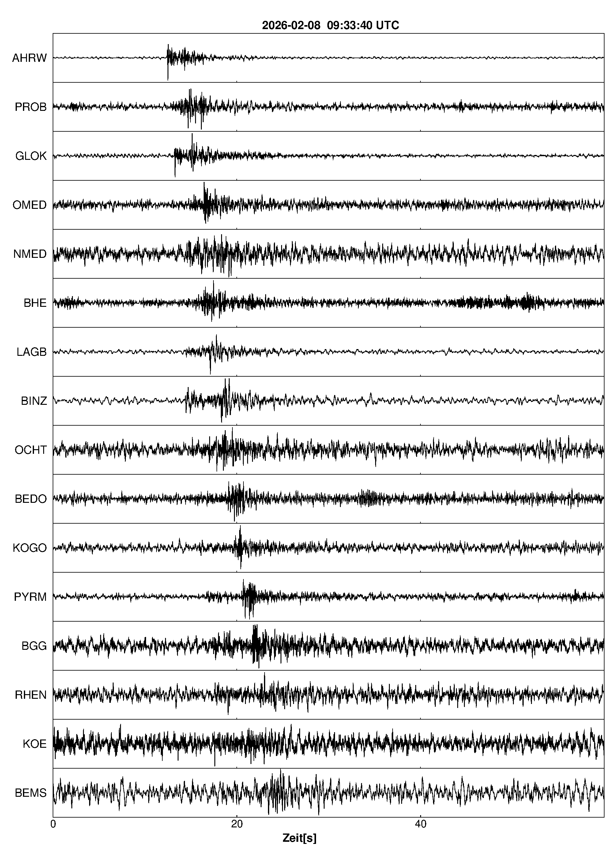 Pfadnavigation Startseite Geologischer Dienst Erdbeben Aktuelle Erdbeben Erdbeben bei Sinzig, Lkrs. Ahrweiler, RP Teilen Erdbeben bei Sinzig, Lkrs. Ahrweiler, RP Erdbeben bei: Sinzig, Lkrs. Ahrweiler, RP Datum/Uhrzeit: am 08.02.2026 um 10:33 Uhr Ortszeit (MEZ) Stärke: 0,5 (Magnitude auf der Richter-Skala) Epizentrum: 50,56° N ㅤ 7,22° E Herdtiefe: ca. 5 km unter der Erdoberfläche Bemerkung: sehr schwaches Erdbeben Seismogramme ausgewählter Erdbebenmessstationen: Erläuterungen: Datum/Uhrzeit:Datum und Zeit des Erdbebens in Ortszeit, also MEZ oder MESZ; Epizentrum:Punkt an der Erdoberfläche über dem Hypozentrum (Lage des Erdbebenherdes in der Tiefe); Magnitude:Erdbebenstärke auf der Richterskala (Lokalmagnitude ML); Herdtiefe:Tiefe des Erdbebens (Hypozentrums) in Kilometern unter NN. Seismogramme:Details zu den Erdbebenmessstationen finden sich im Kartenviewer des LGRB (Baden-Württemberg) und im Kartenviewer des LGB (Rheinland-Pfalz).