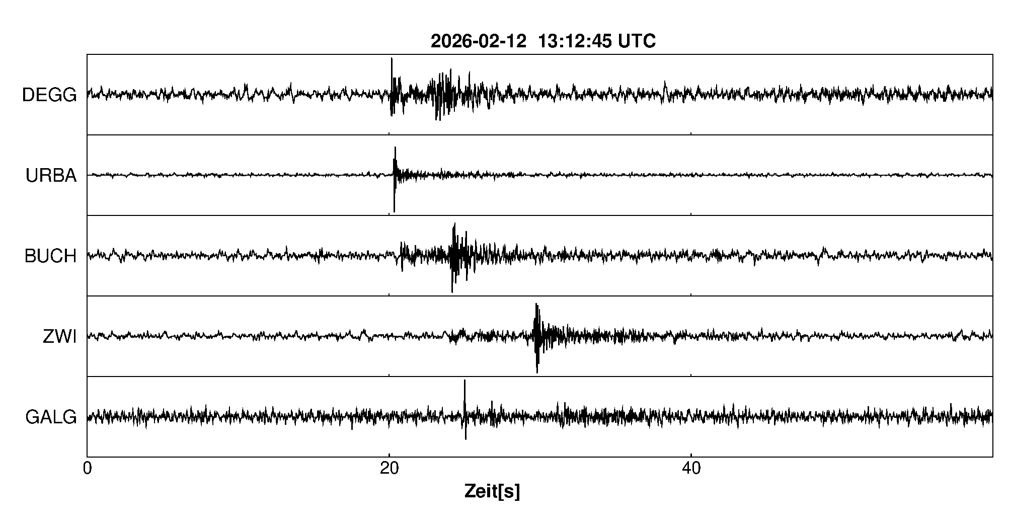 Pfadnavigation Startseite Geologischer Dienst Erdbeben Aktuelle Erdbeben Erdbeben bei Kirchheim unter Teck, Lkrs. Esslingen, BW Teilen Erdbeben bei Kirchheim unter Teck, Lkrs. Esslingen, BW Erdbeben bei: Kirchheim unter Teck, Lkrs. Esslingen, BW Datum/Uhrzeit: am 12.02.2026 um 14:13 Uhr Ortszeit (MEZ) Stärke: 1,2 (Magnitude auf der Richter-Skala) Epizentrum: 48,66° N ㅤ 9,45° E Herdtiefe: ca. 9 km unter der Erdoberfläche Bemerkung: sehr schwaches Erdbeben Seismogramme ausgewählter Erdbebenmessstationen: Erläuterungen: Datum/Uhrzeit:Datum und Zeit des Erdbebens in Ortszeit, also MEZ oder MESZ; Epizentrum:Punkt an der Erdoberfläche über dem Hypozentrum (Lage des Erdbebenherdes in der Tiefe); Magnitude:Erdbebenstärke auf der Richterskala (Lokalmagnitude ML); Herdtiefe:Tiefe des Erdbebens (Hypozentrums) in Kilometern unter NN. Seismogramme:Details zu den Erdbebenmessstationen finden sich im Kartenviewer des LGRB (Baden-Württemberg) und im Kartenviewer des LGB (Rheinland-Pfalz).