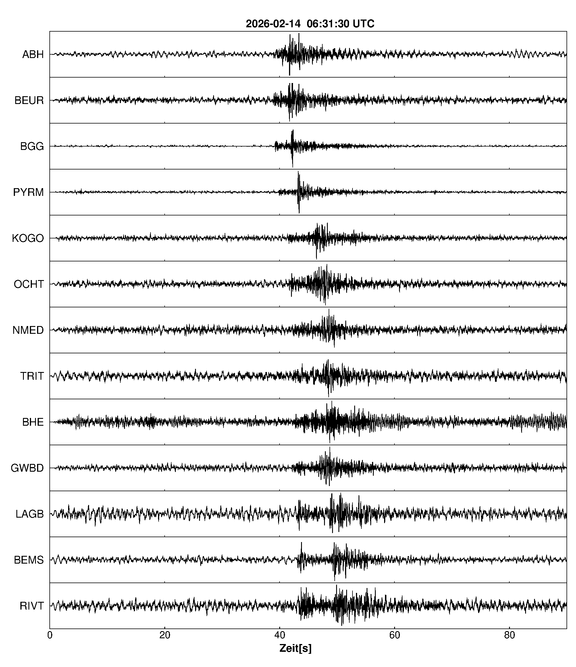 Pfadnavigation Startseite Geologischer Dienst Erdbeben Aktuelle Erdbeben Erdbeben bei Kappel, Rhein-Hunsrück-Kreis, RP Teilen Erdbeben bei Kappel, Rhein-Hunsrück-Kreis, RP Erdbeben bei: Kappel, Rhein-Hunsrück-Kreis, RP Datum/Uhrzeit: am 14.02.2026 um 07:32 Uhr Ortszeit (MEZ) Stärke: 0,8 (Magnitude auf der Richter-Skala) Epizentrum: 49,99° N ㅤ 7,34° E Herdtiefe: ca. 7 km unter der Erdoberfläche Bemerkung: sehr schwaches Erdbeben Seismogramme ausgewählter Erdbebenmessstationen: Erläuterungen: Datum/Uhrzeit:Datum und Zeit des Erdbebens in Ortszeit, also MEZ oder MESZ; Epizentrum:Punkt an der Erdoberfläche über dem Hypozentrum (Lage des Erdbebenherdes in der Tiefe); Magnitude:Erdbebenstärke auf der Richterskala (Lokalmagnitude ML); Herdtiefe:Tiefe des Erdbebens (Hypozentrums) in Kilometern unter NN. Seismogramme:Details zu den Erdbebenmessstationen finden sich im Kartenviewer des LGRB (Baden-Württemberg) und im Kartenviewer des LGB (Rheinland-Pfalz).