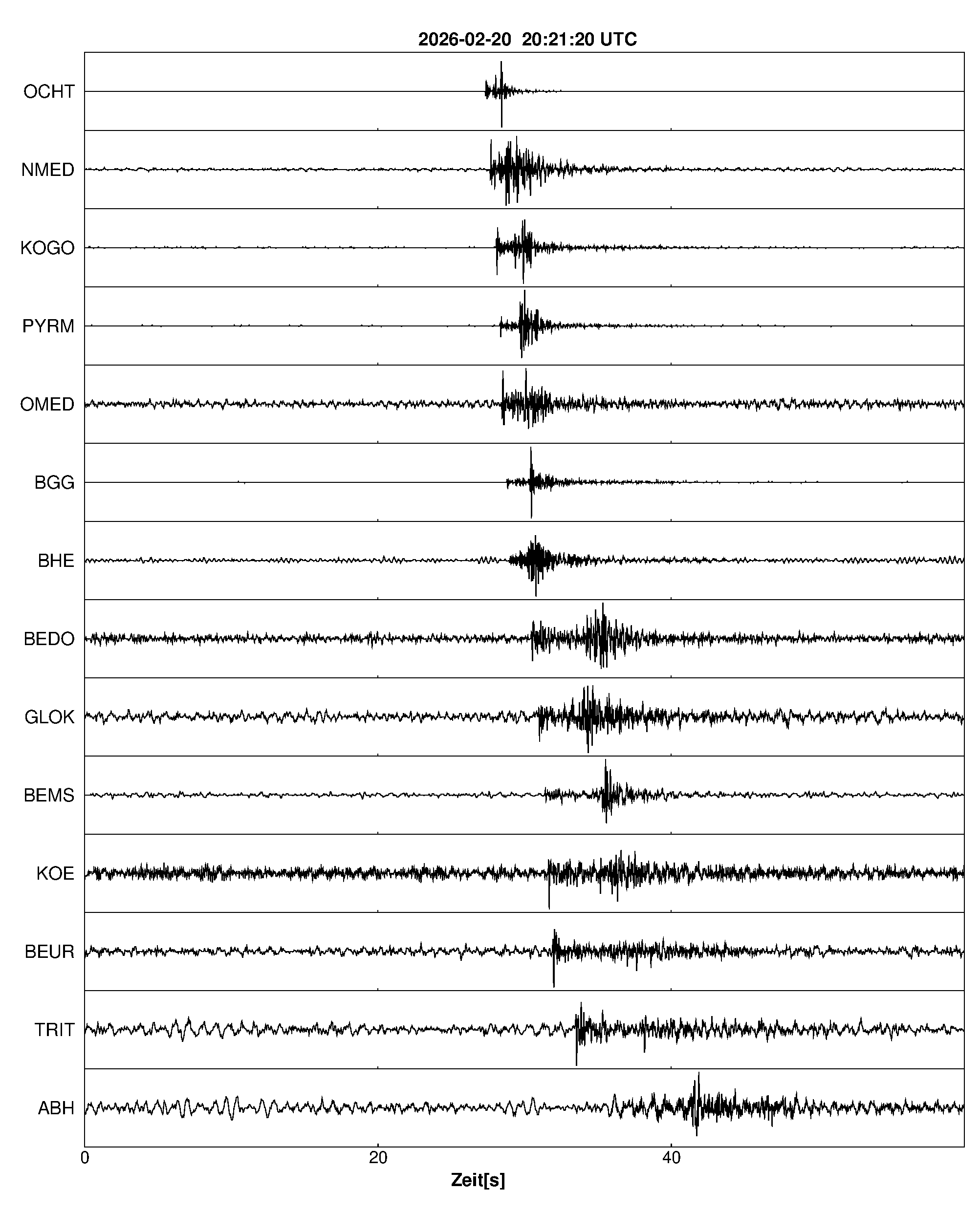 Pfadnavigation Startseite Geologischer Dienst Erdbeben Aktuelle Erdbeben Erdbeben bei Polch, Lkrs. Mayen-Koblenz, RP Teilen Erdbeben bei Polch, Lkrs. Mayen-Koblenz, RP Erdbeben bei: Polch, Lkrs. Mayen-Koblenz, RP Datum/Uhrzeit: am 20.02.2026 um 21:21 Uhr Ortszeit (MEZ) Stärke: 0,8 (Magnitude auf der Richter-Skala) Epizentrum: 50,31° N ㅤ 7,35° E Herdtiefe: ca. 3 km unter der Erdoberfläche Bemerkung: sehr schwaches Erdbeben Seismogramme ausgewählter Erdbebenmessstationen: Erläuterungen: Datum/Uhrzeit:Datum und Zeit des Erdbebens in Ortszeit, also MEZ oder MESZ; Epizentrum:Punkt an der Erdoberfläche über dem Hypozentrum (Lage des Erdbebenherdes in der Tiefe); Magnitude:Erdbebenstärke auf der Richterskala (Lokalmagnitude ML); Herdtiefe:Tiefe des Erdbebens (Hypozentrums) in Kilometern unter NN. Seismogramme:Details zu den Erdbebenmessstationen finden sich im Kartenviewer des LGRB (Baden-Württemberg) und im Kartenviewer des LGB (Rheinland-Pfalz).