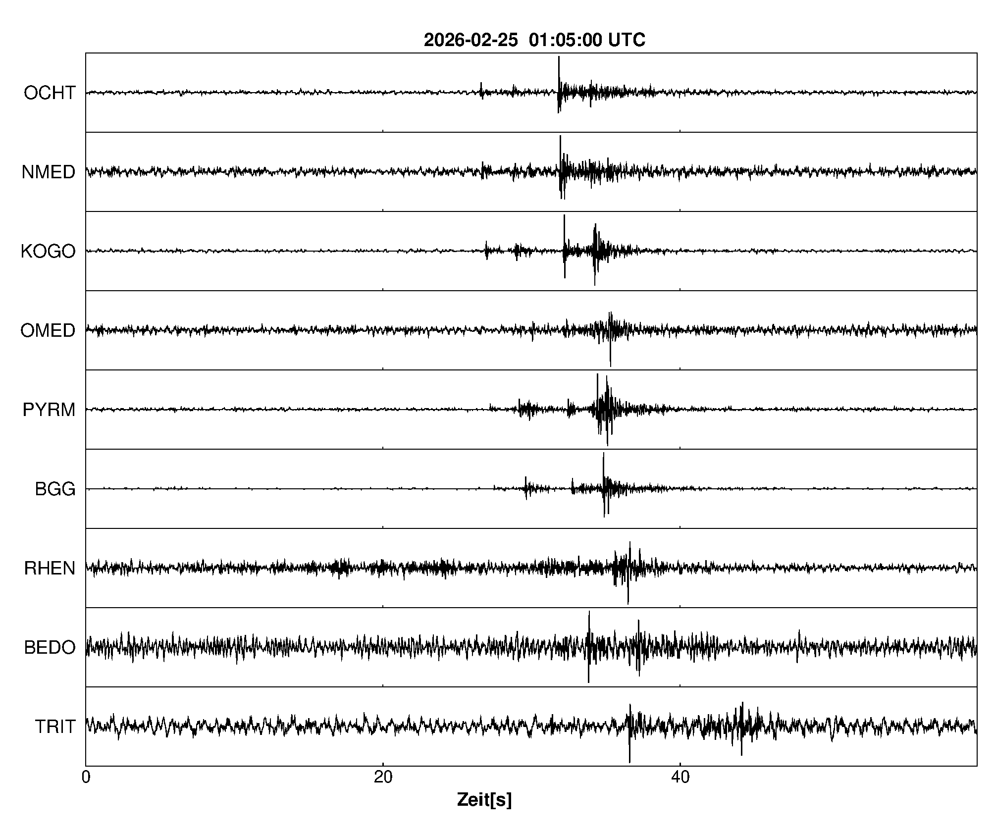 Pfadnavigation Startseite Geologischer Dienst Erdbeben Aktuelle Erdbeben Erdbeben bei Polch, Lkrs. Mayen-Koblenz, RP Teilen Erdbeben bei Polch, Lkrs. Mayen-Koblenz, RP Erdbeben bei: Polch, Lkrs. Mayen-Koblenz, RP Datum/Uhrzeit: am 25.02.2026 um 02:05 Uhr Ortszeit (MEZ) Stärke: 0,5 (Magnitude auf der Richter-Skala) Epizentrum: 50,32° N ㅤ 7,36° E Herdtiefe: ca. 14 km unter der Erdoberfläche Bemerkung: sehr schwaches Erdbeben Seismogramme ausgewählter Erdbebenmessstationen: Erläuterungen: Datum/Uhrzeit:Datum und Zeit des Erdbebens in Ortszeit, also MEZ oder MESZ; Epizentrum:Punkt an der Erdoberfläche über dem Hypozentrum (Lage des Erdbebenherdes in der Tiefe); Magnitude:Erdbebenstärke auf der Richterskala (Lokalmagnitude ML); Herdtiefe:Tiefe des Erdbebens (Hypozentrums) in Kilometern unter NN. Seismogramme:Details zu den Erdbebenmessstationen finden sich im Kartenviewer des LGRB (Baden-Württemberg) und im Kartenviewer des LGB (Rheinland-Pfalz).