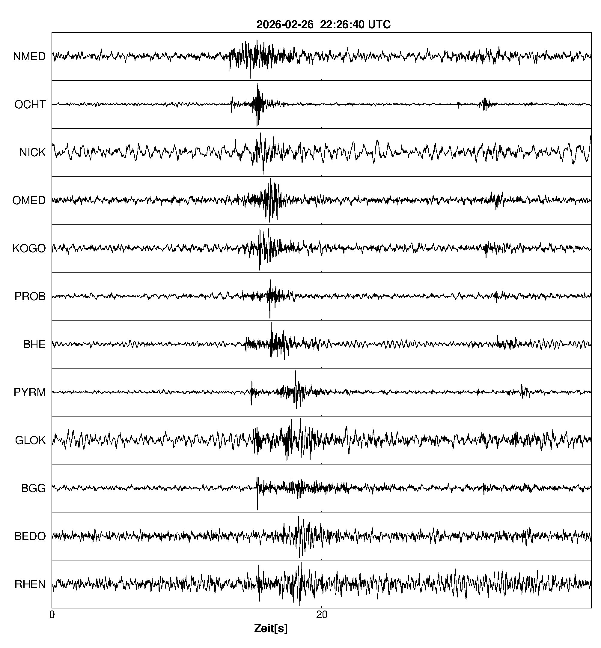 Pfadnavigation Startseite Geologischer Dienst Erdbeben Aktuelle Erdbeben Erdbeben bei Kruft, Lkrs. Mayen-Koblenz, RP Teilen Erdbeben bei Kruft, Lkrs. Mayen-Koblenz, RP Erdbeben bei: Kruft, Lkrs. Mayen-Koblenz, RP Datum/Uhrzeit: am 26.02.2026 um 23:26 Uhr Ortszeit (MEZ) Stärke: 0,5 (Magnitude auf der Richter-Skala) Epizentrum: 50,38° N ㅤ 7,36° E Herdtiefe: ca. 10 km unter der Erdoberfläche Bemerkung: sehr schwaches Erdbeben Seismogramme ausgewählter Erdbebenmessstationen: Erläuterungen: Datum/Uhrzeit:Datum und Zeit des Erdbebens in Ortszeit, also MEZ oder MESZ; Epizentrum:Punkt an der Erdoberfläche über dem Hypozentrum (Lage des Erdbebenherdes in der Tiefe); Magnitude:Erdbebenstärke auf der Richterskala (Lokalmagnitude ML); Herdtiefe:Tiefe des Erdbebens (Hypozentrums) in Kilometern unter NN. Seismogramme:Details zu den Erdbebenmessstationen finden sich im Kartenviewer des LGRB (Baden-Württemberg) und im Kartenviewer des LGB (Rheinland-Pfalz).