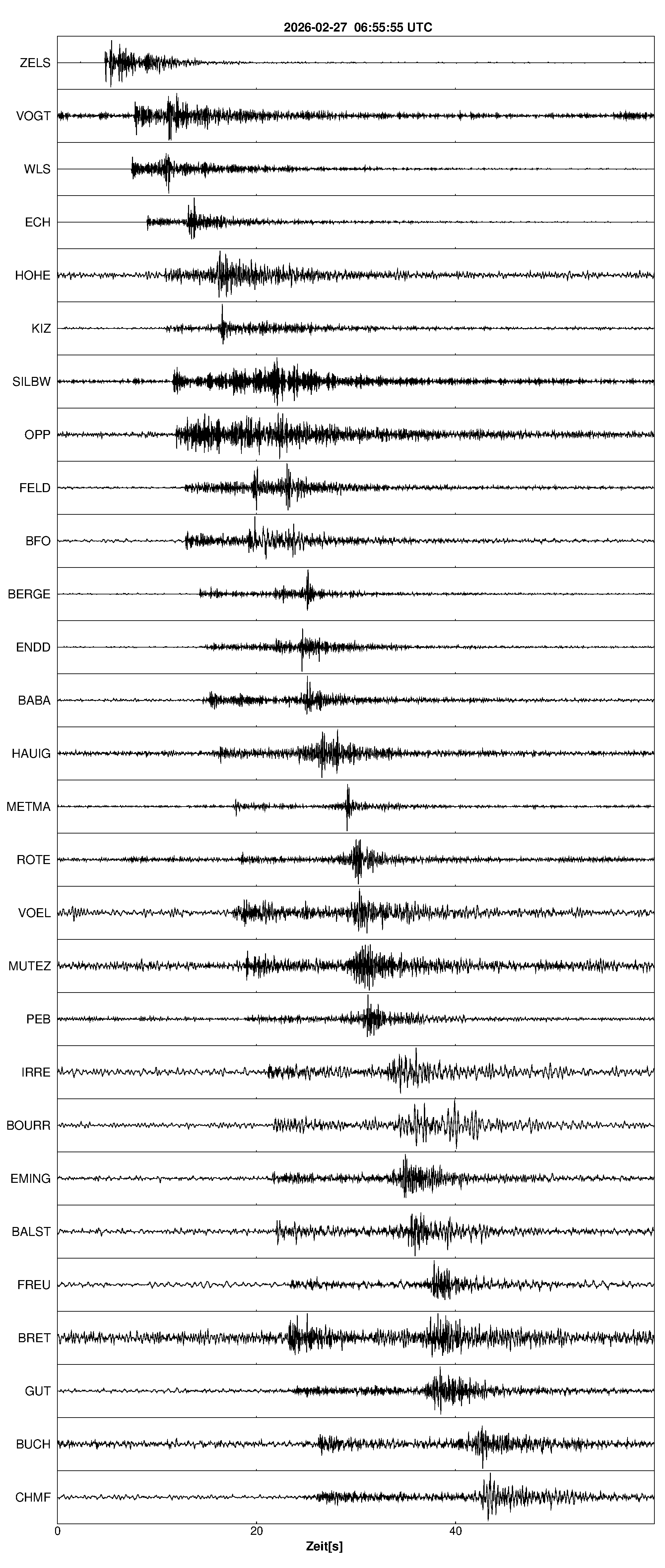Pfadnavigation Startseite Geologischer Dienst Erdbeben Aktuelle Erdbeben Erdbeben bei Wittisheim, Dep. Bas-Rhin, F Teilen Erdbeben bei Wittisheim, Dep. Bas-Rhin, F Erdbeben außerhalb von Baden-Württemberg und Rheinland-Pfalz:Die maßgeblichen Angaben veröffentlicht der lokal zuständige Erdbebendienst. Erdbeben bei: Wittisheim, Dep. Bas-Rhin, F Datum/Uhrzeit: am 27.02.2026 um 07:55 Uhr Ortszeit (MEZ) Stärke: 1,7 (Magnitude auf der Richter-Skala) Epizentrum: 48,28° N ㅤ 7,58° E Herdtiefe: ca. 7 km unter der Erdoberfläche Bemerkung: sehr schwaches Erdbeben Seismogramme ausgewählter Erdbebenmessstationen: Erläuterungen: Datum/Uhrzeit:Datum und Zeit des Erdbebens in Ortszeit, also MEZ oder MESZ; Epizentrum:Punkt an der Erdoberfläche über dem Hypozentrum (Lage des Erdbebenherdes in der Tiefe); Magnitude:Erdbebenstärke auf der Richterskala (Lokalmagnitude ML); Herdtiefe:Tiefe des Erdbebens (Hypozentrums) in Kilometern unter NN. Seismogramme:Details zu den Erdbebenmessstationen finden sich im Kartenviewer des LGRB (Baden-Württemberg) und im Kartenviewer des LGB (Rheinland-Pfalz).