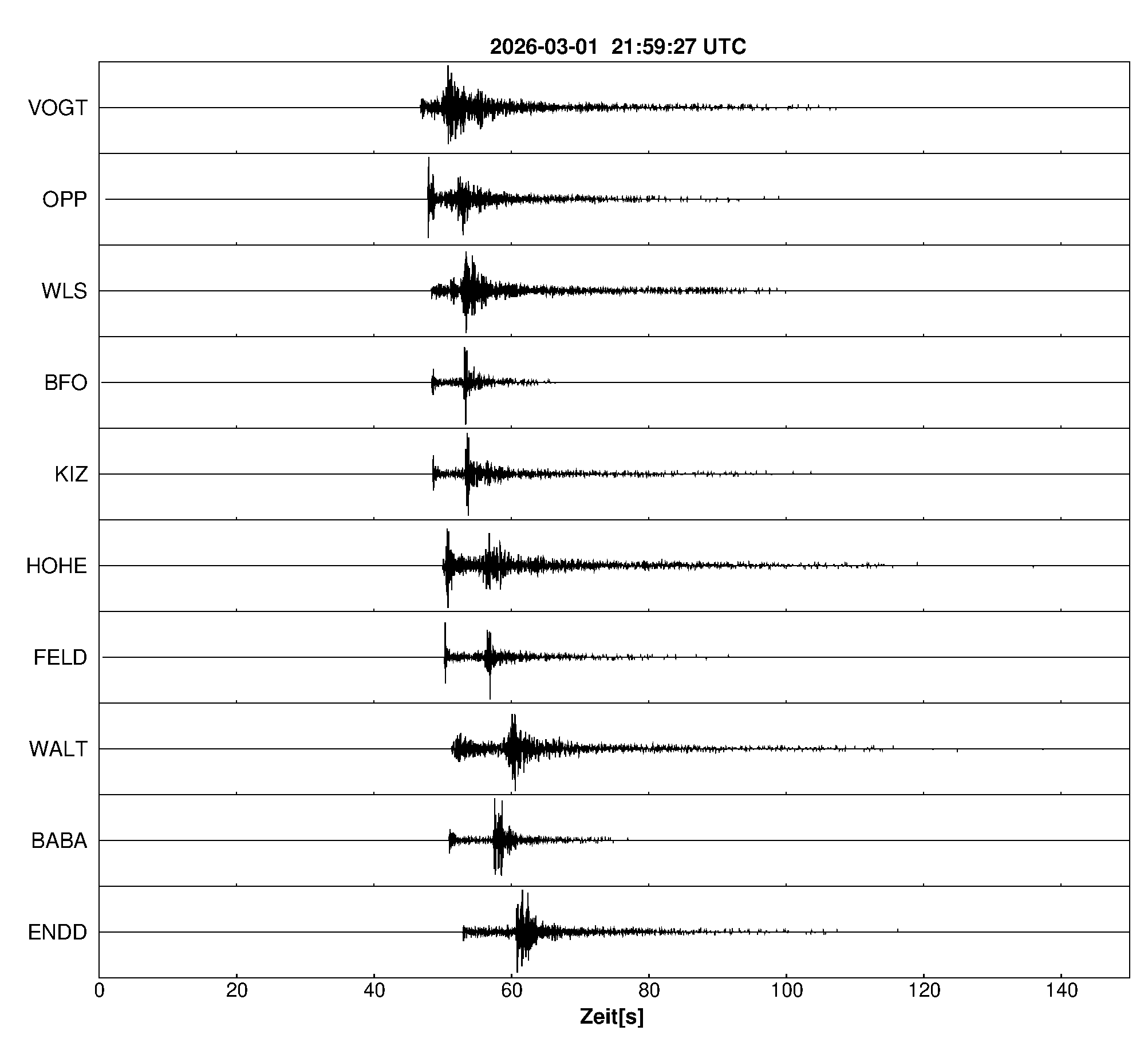 Seismogramme ausgewählter Erdbebenmessstationen: