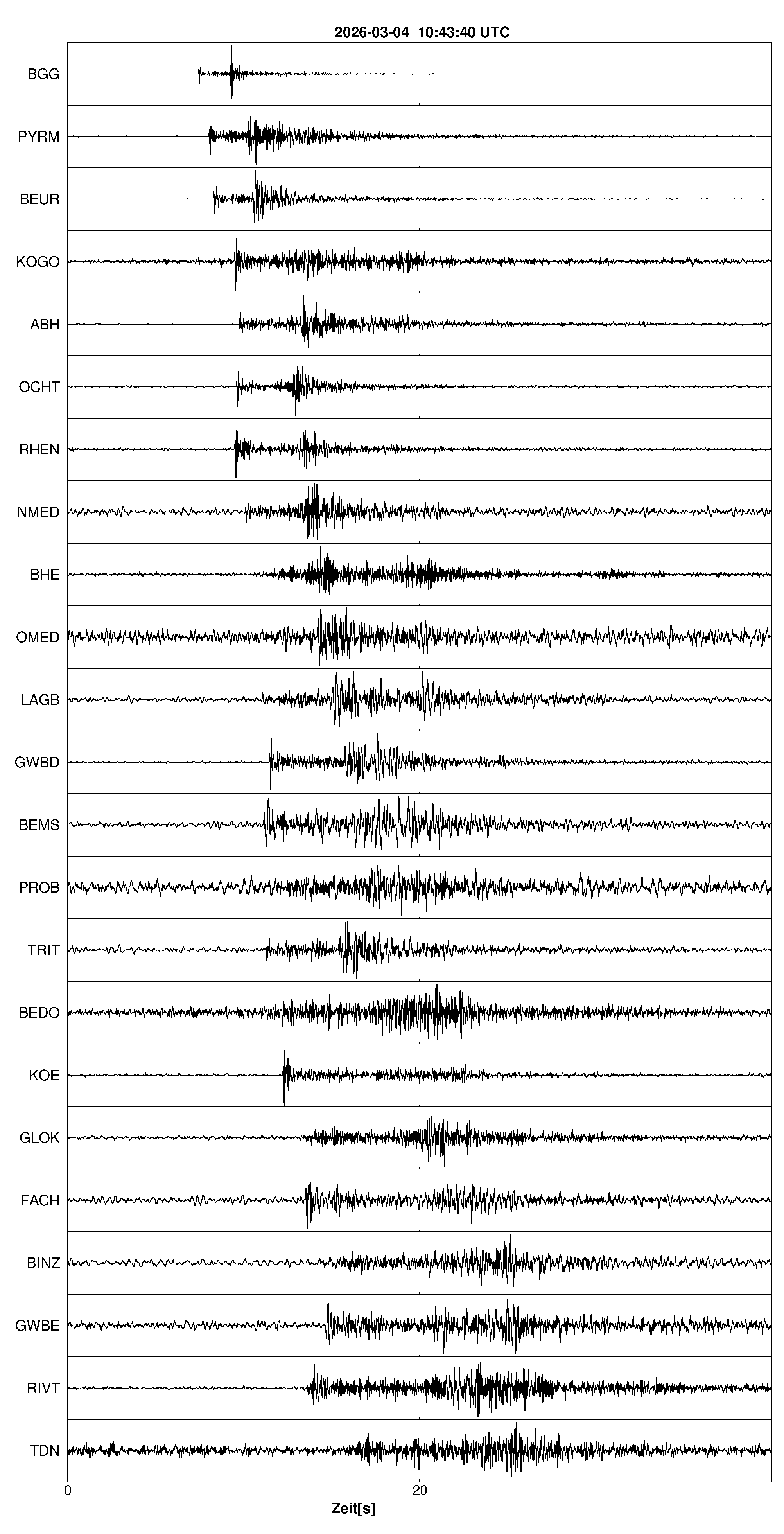 Pfadnavigation Startseite Geologischer Dienst Erdbeben Aktuelle Erdbeben Erdbeben bei Mörsdorf, Rhein-Hunsrück-Kreis, RP Teilen Erdbeben bei Mörsdorf, Rhein-Hunsrück-Kreis, RP Erdbeben bei: Mörsdorf, Rhein-Hunsrück-Kreis, RP Datum/Uhrzeit: am 04.03.2026 um 11:43 Uhr Ortszeit (MEZ) Stärke: 1,4 (Magnitude auf der Richter-Skala) Epizentrum: 50,09° N ㅤ 7,37° E Herdtiefe: ca. 8 km unter der Erdoberfläche Bemerkung: sehr schwaches Erdbeben Seismogramme ausgewählter Erdbebenmessstationen: Erläuterungen: Datum/Uhrzeit:Datum und Zeit des Erdbebens in Ortszeit, also MEZ oder MESZ; Epizentrum:Punkt an der Erdoberfläche über dem Hypozentrum (Lage des Erdbebenherdes in der Tiefe); Magnitude:Erdbebenstärke auf der Richterskala (Lokalmagnitude ML); Herdtiefe:Tiefe des Erdbebens (Hypozentrums) in Kilometern unter NN. Seismogramme:Details zu den Erdbebenmessstationen finden sich im Kartenviewer des LGRB (Baden-Württemberg) und im Kartenviewer des LGB (Rheinland-Pfalz).