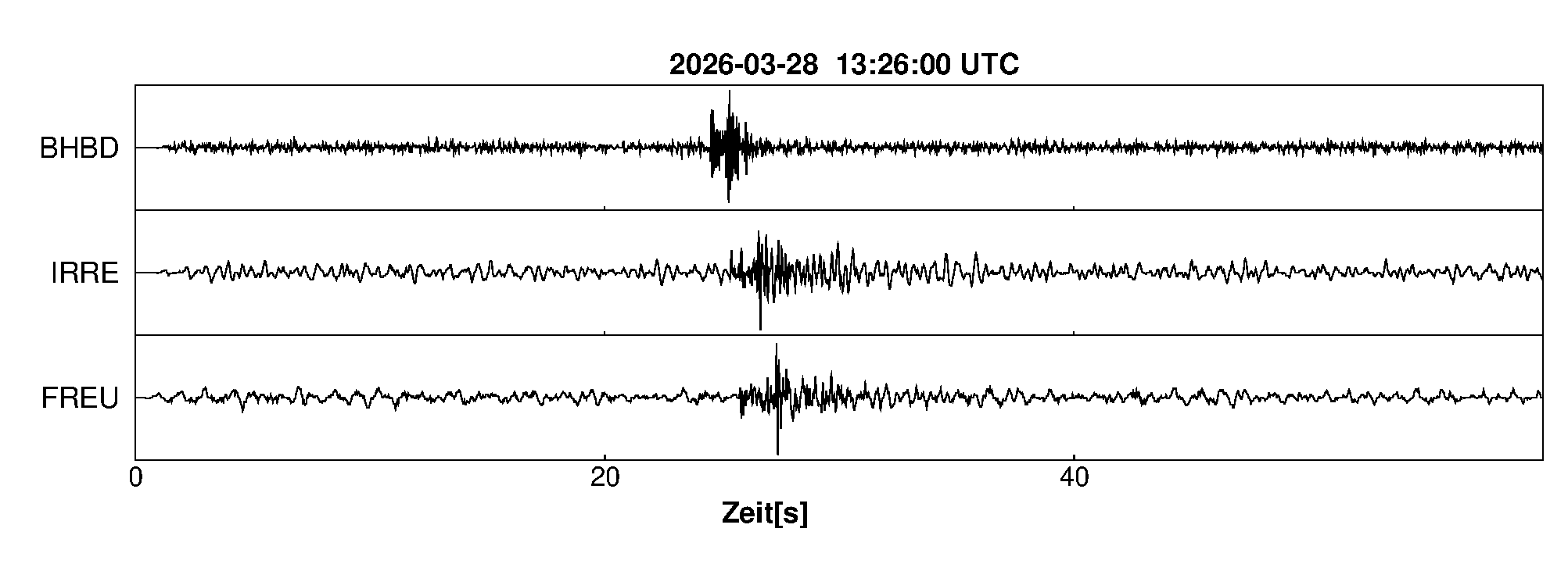 Pfadnavigation Startseite Geologischer Dienst Erdbeben Aktuelle Erdbeben Erdbeben bei Albstadt, Zollernalbkreis, BW Teilen Erdbeben bei Albstadt, Zollernalbkreis, BW Erdbeben bei: Albstadt, Zollernalbkreis, BW Datum/Uhrzeit: am 28.03.2026 um 14:26 Uhr Ortszeit (MEZ) Stärke: 0,4 (Magnitude auf der Richter-Skala) Epizentrum: 48,24° N ㅤ 9,01° E Herdtiefe: ca. 3 km unter der Erdoberfläche Bemerkung: sehr schwaches Erdbeben Seismogramme ausgewählter Erdbebenmessstationen: Erläuterungen: Datum/Uhrzeit:Datum und Zeit des Erdbebens in Ortszeit, also MEZ oder MESZ; Epizentrum:Punkt an der Erdoberfläche über dem Hypozentrum (Lage des Erdbebenherdes in der Tiefe); Magnitude:Erdbebenstärke auf der Richterskala (Lokalmagnitude ML); Herdtiefe:Tiefe des Erdbebens (Hypozentrums) in Kilometern unter NN. Seismogramme:Details zu den Erdbebenmessstationen finden sich im Kartenviewer des LGRB (Baden-Württemberg) und im Kartenviewer des LGB (Rheinland-Pfalz).