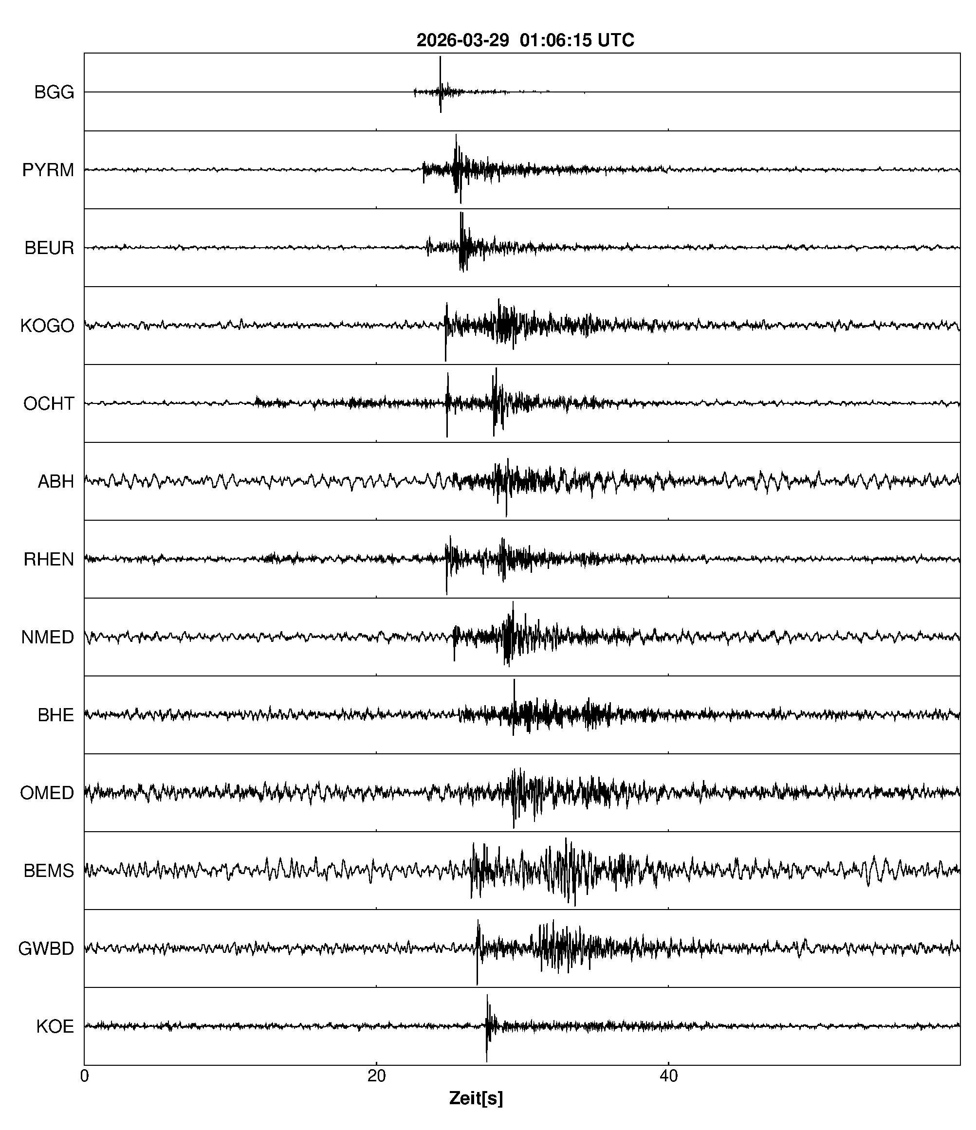 Pfadnavigation Startseite Geologischer Dienst Erdbeben Aktuelle Erdbeben Erdbeben bei Mörsdorf, Rhein-Hunsrück-Kreis, RP Teilen Erdbeben bei Mörsdorf, Rhein-Hunsrück-Kreis, RP Erdbeben bei: Mörsdorf, Rhein-Hunsrück-Kreis, RP Datum/Uhrzeit: am 29.03.2026 um 03:06 Uhr Ortszeit (MESZ) Stärke: 0,8 (Magnitude auf der Richter-Skala) Epizentrum: 50,10° N ㅤ 7,36° E Herdtiefe: ca. 8 km unter der Erdoberfläche Bemerkung: sehr schwaches Erdbeben Seismogramme ausgewählter Erdbebenmessstationen: Erläuterungen: Datum/Uhrzeit:Datum und Zeit des Erdbebens in Ortszeit, also MEZ oder MESZ; Epizentrum:Punkt an der Erdoberfläche über dem Hypozentrum (Lage des Erdbebenherdes in der Tiefe); Magnitude:Erdbebenstärke auf der Richterskala (Lokalmagnitude ML); Herdtiefe:Tiefe des Erdbebens (Hypozentrums) in Kilometern unter NN. Seismogramme:Details zu den Erdbebenmessstationen finden sich im Kartenviewer des LGRB (Baden-Württemberg) und im Kartenviewer des LGB (Rheinland-Pfalz).