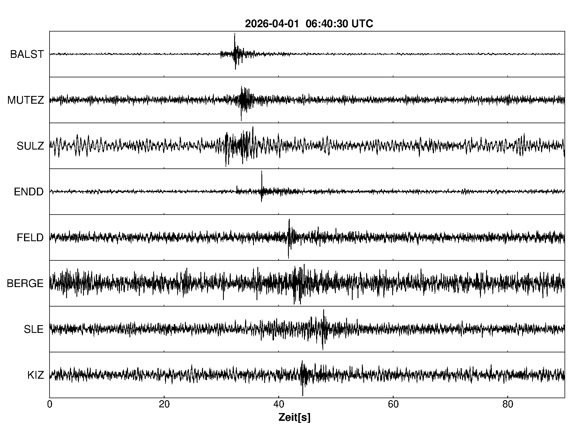 Pfadnavigation Startseite Geologischer Dienst Erdbeben Aktuelle Erdbeben Erdbeben bei Rünenberg, Kt. Basel-Landschaft, CH Teilen Erdbeben bei Rünenberg, Kt. Basel-Landschaft, CH Erdbeben außerhalb von Baden-Württemberg und Rheinland-Pfalz:Die maßgeblichen Angaben veröffentlicht der lokal zuständige Erdbebendienst. Erdbeben bei: Rünenberg, Kt. Basel-Landschaft, CH Datum/Uhrzeit: am 01.04.2026 um 08:40 Uhr Ortszeit (MESZ) Stärke: 0,9 (Magnitude auf der Richter-Skala) Epizentrum: 47,42° N ㅤ 7,88° E Herdtiefe: ca. 8 km unter der Erdoberfläche Bemerkung: sehr schwaches Erdbeben Seismogramme ausgewählter Erdbebenmessstationen: Erläuterungen: Datum/Uhrzeit:Datum und Zeit des Erdbebens in Ortszeit, also MEZ oder MESZ; Epizentrum:Punkt an der Erdoberfläche über dem Hypozentrum (Lage des Erdbebenherdes in der Tiefe); Magnitude:Erdbebenstärke auf der Richterskala (Lokalmagnitude ML); Herdtiefe:Tiefe des Erdbebens (Hypozentrums) in Kilometern unter NN. Seismogramme:Details zu den Erdbebenmessstationen finden sich im Kartenviewer des LGRB (Baden-Württemberg) und im Kartenviewer des LGB (Rheinland-Pfalz).