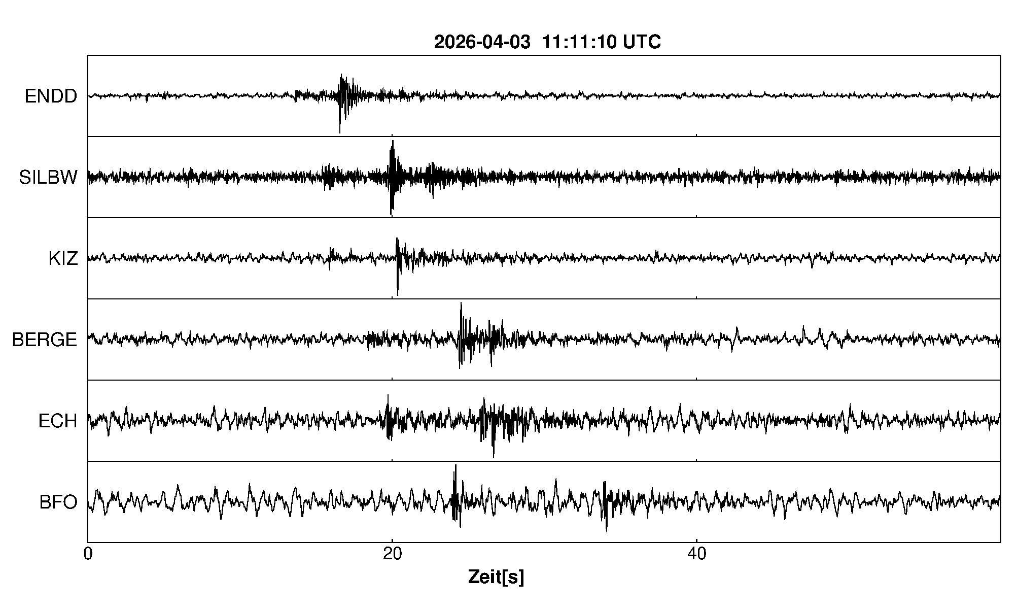 Pfadnavigation Startseite Geologischer Dienst Erdbeben Aktuelle Erdbeben Erdbeben bei Neuenburg am Rhein, Lkrs. Breisgau-H., BW Teilen Erdbeben bei Neuenburg am Rhein, Lkrs. Breisgau-H., BW Erdbeben bei: Neuenburg am Rhein, Lkrs. Breisgau-H., BW Datum/Uhrzeit: am 03.04.2026 um 13:11 Uhr Ortszeit (MESZ) Stärke: 0,7 (Magnitude auf der Richter-Skala) Epizentrum: 47,80° N ㅤ 7,54° E Herdtiefe: ca. 13 km unter der Erdoberfläche Bemerkung: sehr schwaches Erdbeben Seismogramme ausgewählter Erdbebenmessstationen: Erläuterungen: Datum/Uhrzeit:Datum und Zeit des Erdbebens in Ortszeit, also MEZ oder MESZ; Epizentrum:Punkt an der Erdoberfläche über dem Hypozentrum (Lage des Erdbebenherdes in der Tiefe); Magnitude:Erdbebenstärke auf der Richterskala (Lokalmagnitude ML); Herdtiefe:Tiefe des Erdbebens (Hypozentrums) in Kilometern unter NN. Seismogramme:Details zu den Erdbebenmessstationen finden sich im Kartenviewer des LGRB (Baden-Württemberg) und im Kartenviewer des LGB (Rheinland-Pfalz).