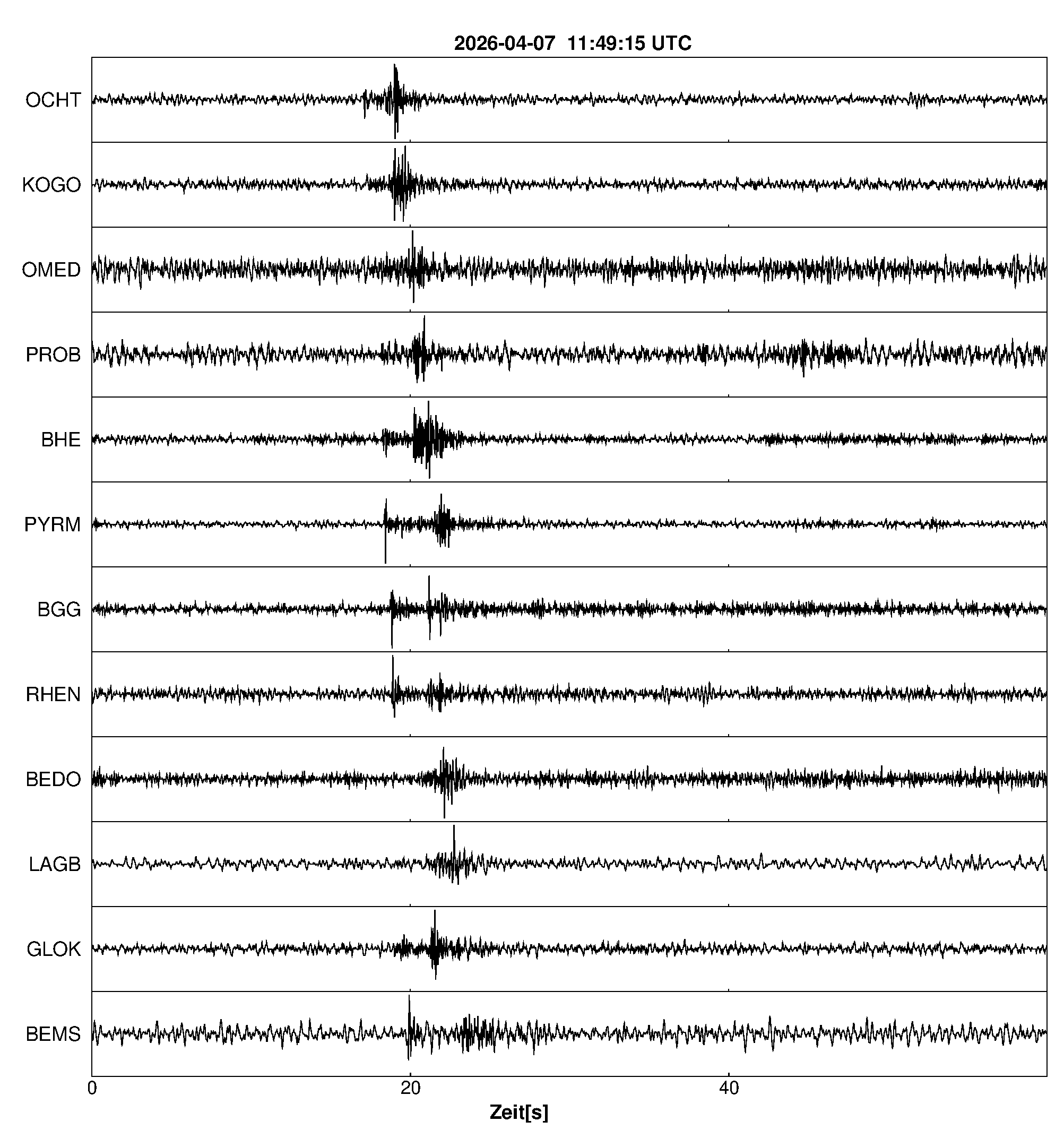 Pfadnavigation Startseite Geologischer Dienst Erdbeben Aktuelle Erdbeben Erdbeben bei Ochtendung, Lkrs. Mayen-Koblenz, RP Teilen Erdbeben bei Ochtendung, Lkrs. Mayen-Koblenz, RP Erdbeben bei: Ochtendung, Lkrs. Mayen-Koblenz, RP Datum/Uhrzeit: am 07.04.2026 um 13:49 Uhr Ortszeit (MESZ) Stärke: 0,5 (Magnitude auf der Richter-Skala) Epizentrum: 50,36° N ㅤ 7,38° E Herdtiefe: ca. 10 km unter der Erdoberfläche Bemerkung: sehr schwaches Erdbeben Seismogramme ausgewählter Erdbebenmessstationen: Erläuterungen: Datum/Uhrzeit:Datum und Zeit des Erdbebens in Ortszeit, also MEZ oder MESZ; Epizentrum:Punkt an der Erdoberfläche über dem Hypozentrum (Lage des Erdbebenherdes in der Tiefe); Magnitude:Erdbebenstärke auf der Richterskala (Lokalmagnitude ML); Herdtiefe:Tiefe des Erdbebens (Hypozentrums) in Kilometern unter NN. Seismogramme:Details zu den Erdbebenmessstationen finden sich im Kartenviewer des LGRB (Baden-Württemberg) und im Kartenviewer des LGB (Rheinland-Pfalz).