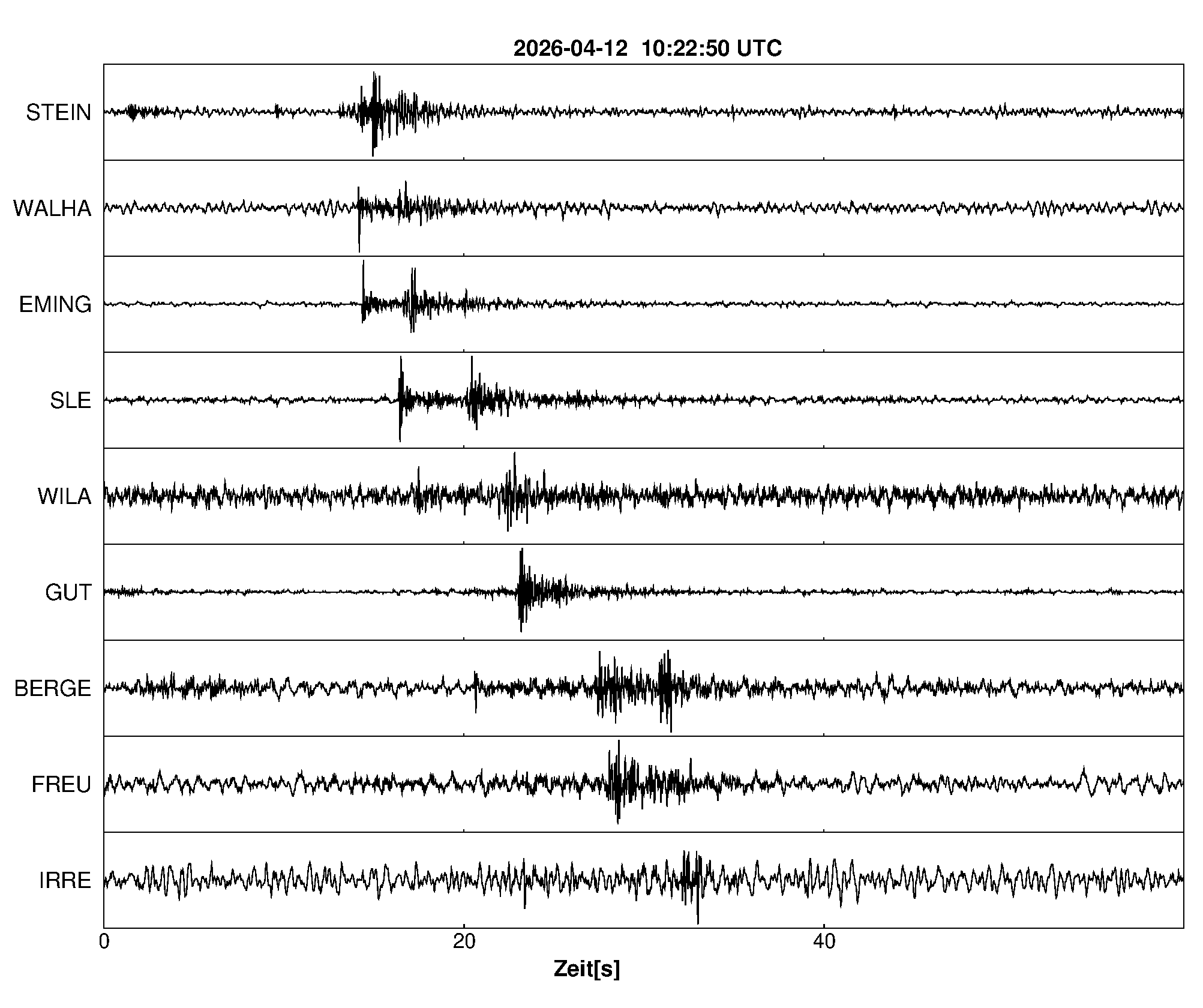 Pfadnavigation Startseite Geologischer Dienst Erdbeben Aktuelle Erdbeben Erdbeben bei Singen (Hohentwiel), Lkrs. Konstanz, BW Teilen Erdbeben bei Singen (Hohentwiel), Lkrs. Konstanz, BW Erdbeben bei: Singen (Hohentwiel), Lkrs. Konstanz, BW Datum/Uhrzeit: am 12.04.2026 um 12:23 Uhr Ortszeit (MESZ) Stärke: 0,9 (Magnitude auf der Richter-Skala) Epizentrum: 47,74° N ㅤ 8,90° E Herdtiefe: ca. 9 km unter der Erdoberfläche Bemerkung: sehr schwaches Erdbeben Seismogramme ausgewählter Erdbebenmessstationen: Erläuterungen: Datum/Uhrzeit:Datum und Zeit des Erdbebens in Ortszeit, also MEZ oder MESZ; Epizentrum:Punkt an der Erdoberfläche über dem Hypozentrum (Lage des Erdbebenherdes in der Tiefe); Magnitude:Erdbebenstärke auf der Richterskala (Lokalmagnitude ML); Herdtiefe:Tiefe des Erdbebens (Hypozentrums) in Kilometern unter NN. Seismogramme:Details zu den Erdbebenmessstationen finden sich im Kartenviewer des LGRB (Baden-Württemberg) und im Kartenviewer des LGB (Rheinland-Pfalz).