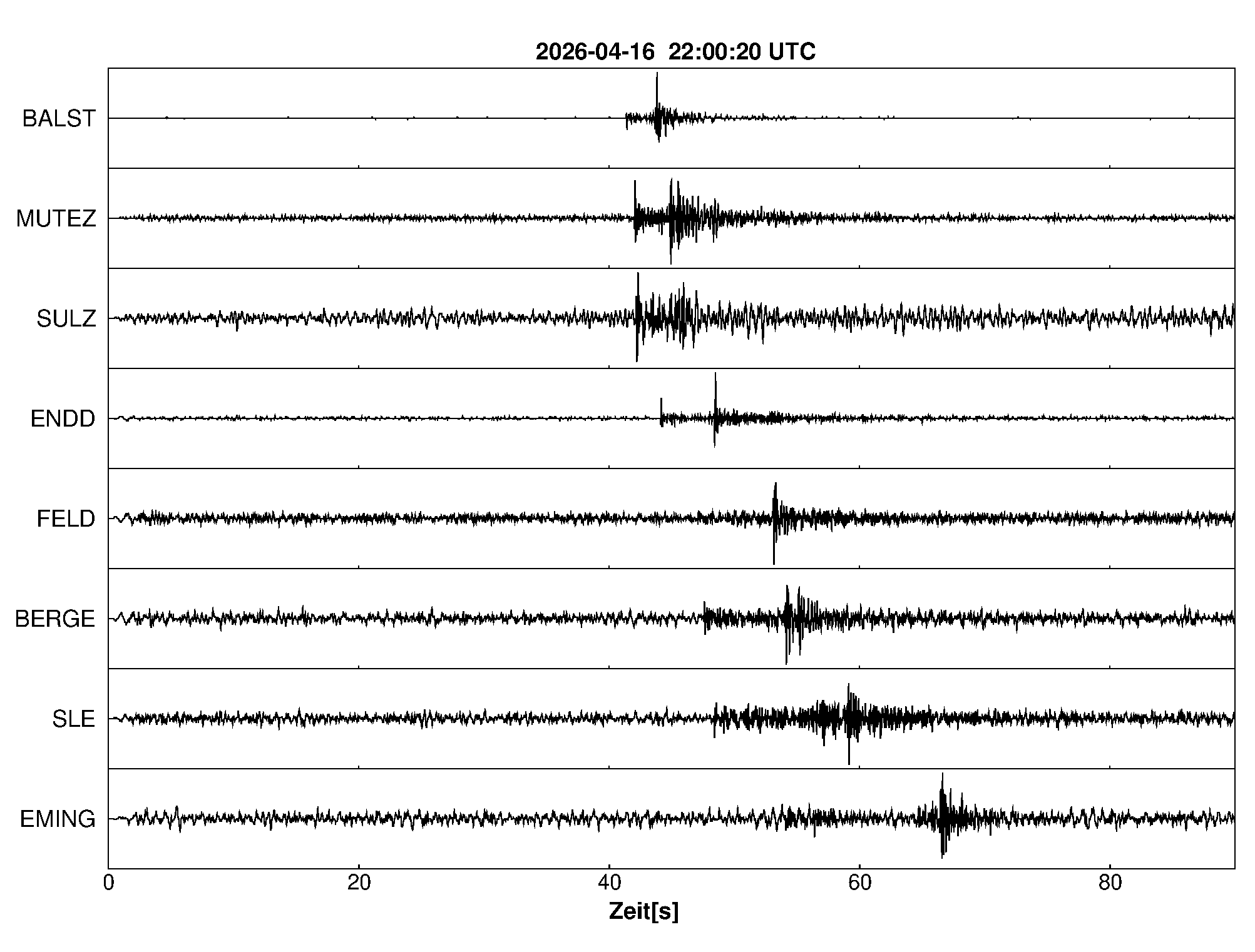 Pfadnavigation Startseite Geologischer Dienst Erdbeben Aktuelle Erdbeben Erdbeben bei Rünenberg, Kt. Basel-Landschaft, CH Teilen Erdbeben bei Rünenberg, Kt. Basel-Landschaft, CH Erdbeben außerhalb von Baden-Württemberg und Rheinland-Pfalz:Die maßgeblichen Angaben veröffentlicht der lokal zuständige Erdbebendienst. Erdbeben bei: Rünenberg, Kt. Basel-Landschaft, CH Datum/Uhrzeit: am 17.04.2026 um 00:00 Uhr Ortszeit (MESZ) Stärke: 0,8 (Magnitude auf der Richter-Skala) Epizentrum: 47,43° N ㅤ 7,89° E Herdtiefe: ca. 7 km unter der Erdoberfläche Bemerkung: sehr schwaches Erdbeben Seismogramme ausgewählter Erdbebenmessstationen: Erläuterungen: Datum/Uhrzeit:Datum und Zeit des Erdbebens in Ortszeit, also MEZ oder MESZ; Epizentrum:Punkt an der Erdoberfläche über dem Hypozentrum (Lage des Erdbebenherdes in der Tiefe); Magnitude:Erdbebenstärke auf der Richterskala (Lokalmagnitude ML); Herdtiefe:Tiefe des Erdbebens (Hypozentrums) in Kilometern unter NN. Seismogramme:Details zu den Erdbebenmessstationen finden sich im Kartenviewer des LGRB (Baden-Württemberg) und im Kartenviewer des LGB (Rheinland-Pfalz).