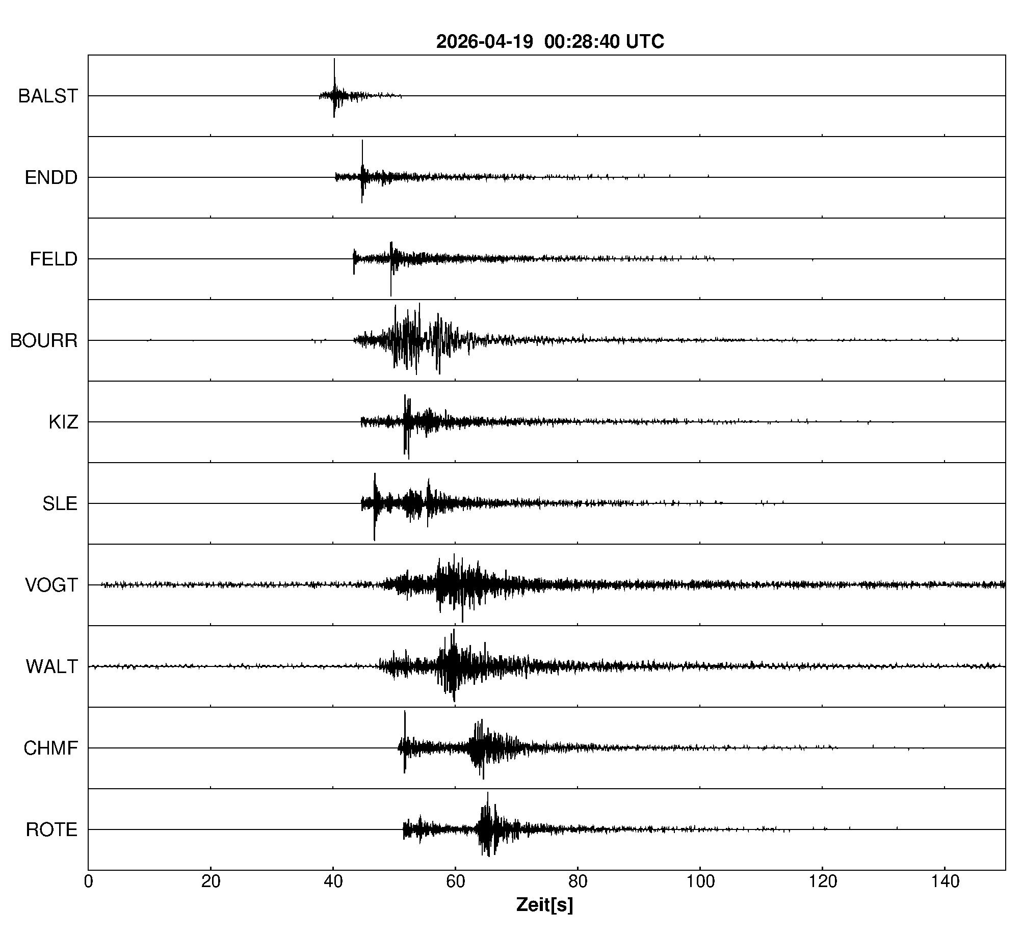 Seismogramme ausgewählter Erdbebenmessstationen: